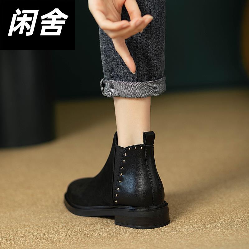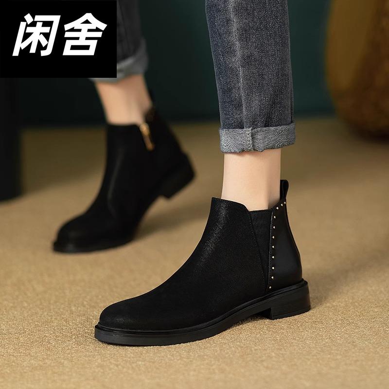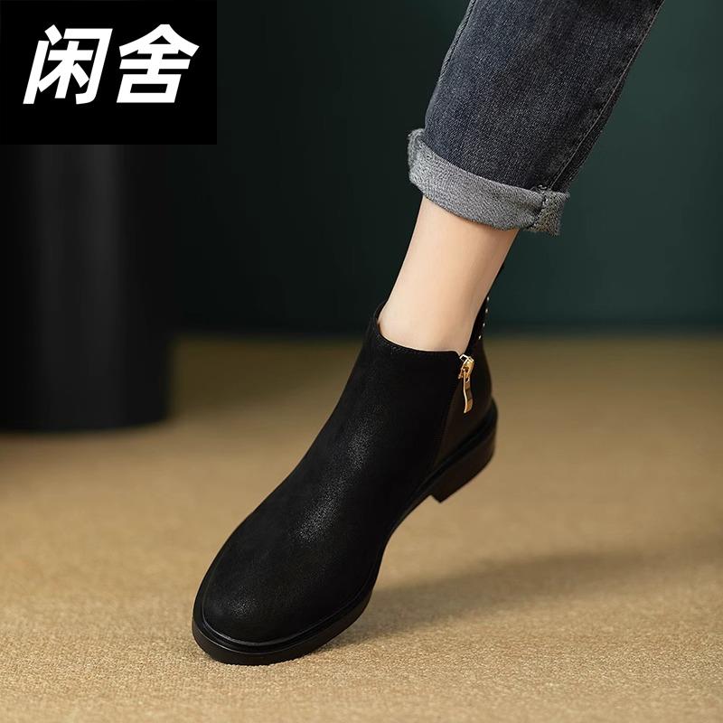 秋冬风马丁靴女2025新款圆头低跟小短靴切西百搭及踝靴1002u
