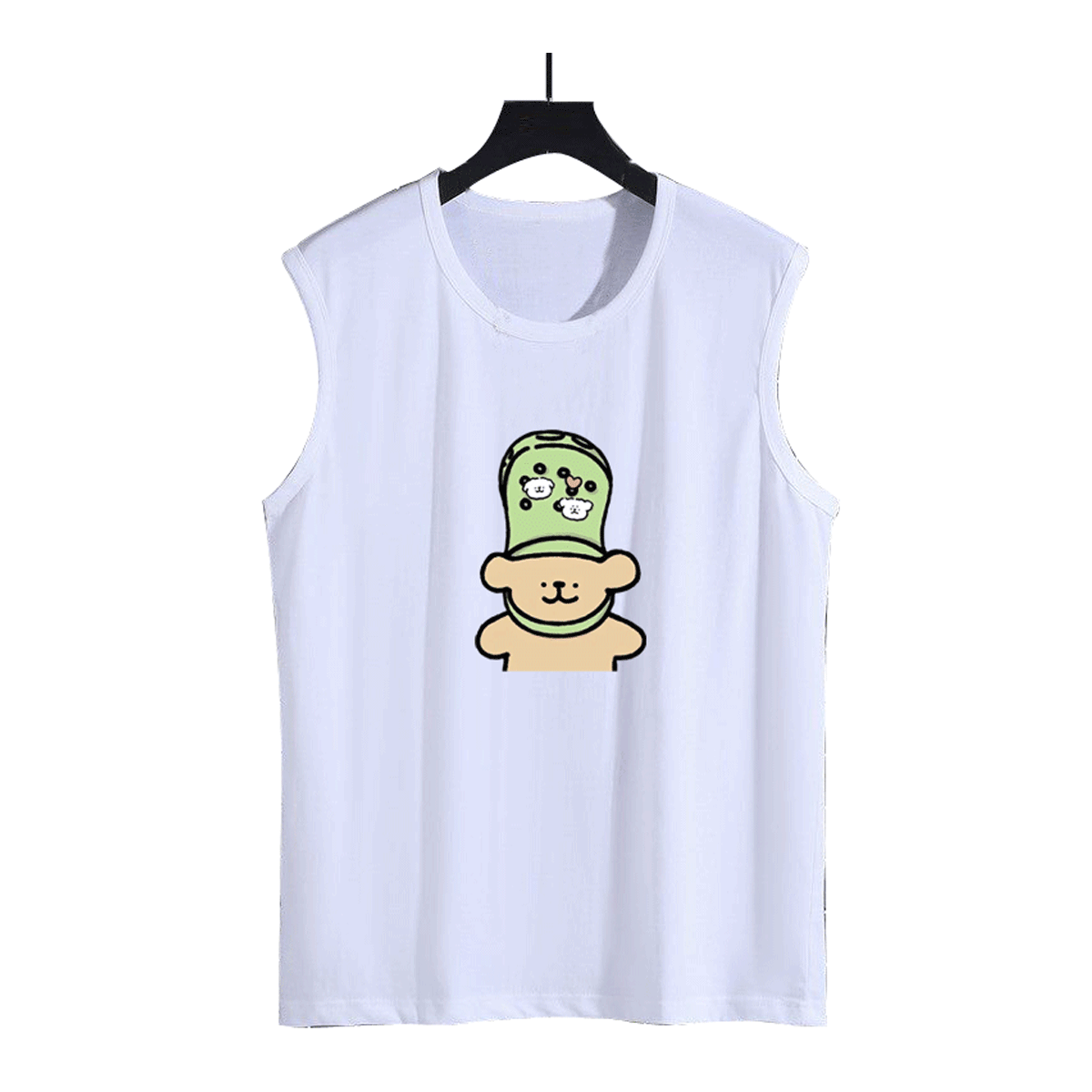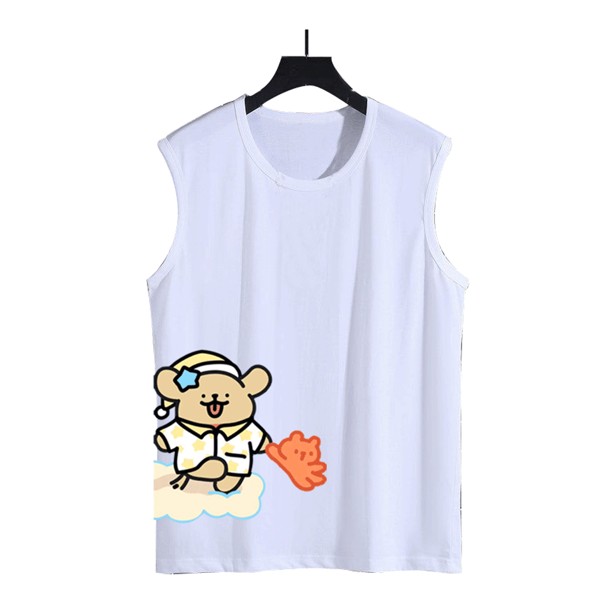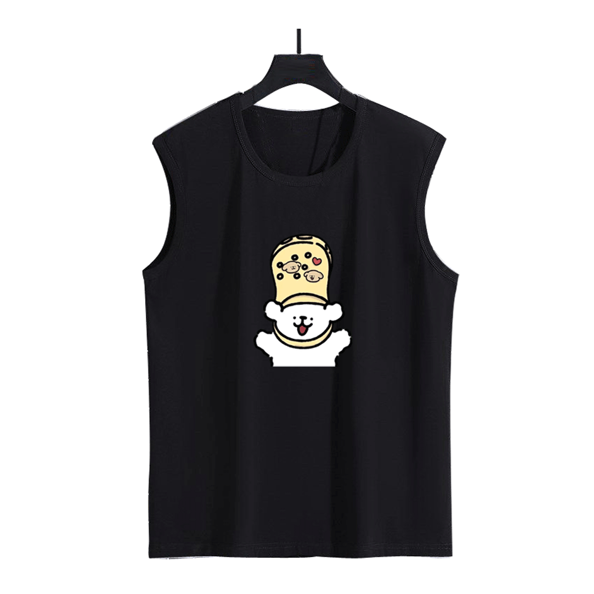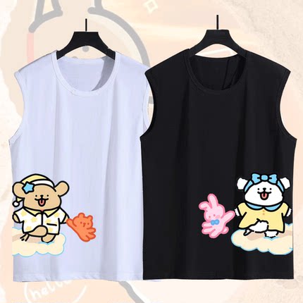 马尔济斯线条小狗周边无袖T恤衫男女情侣夏季纯棉宽松百搭潮背心