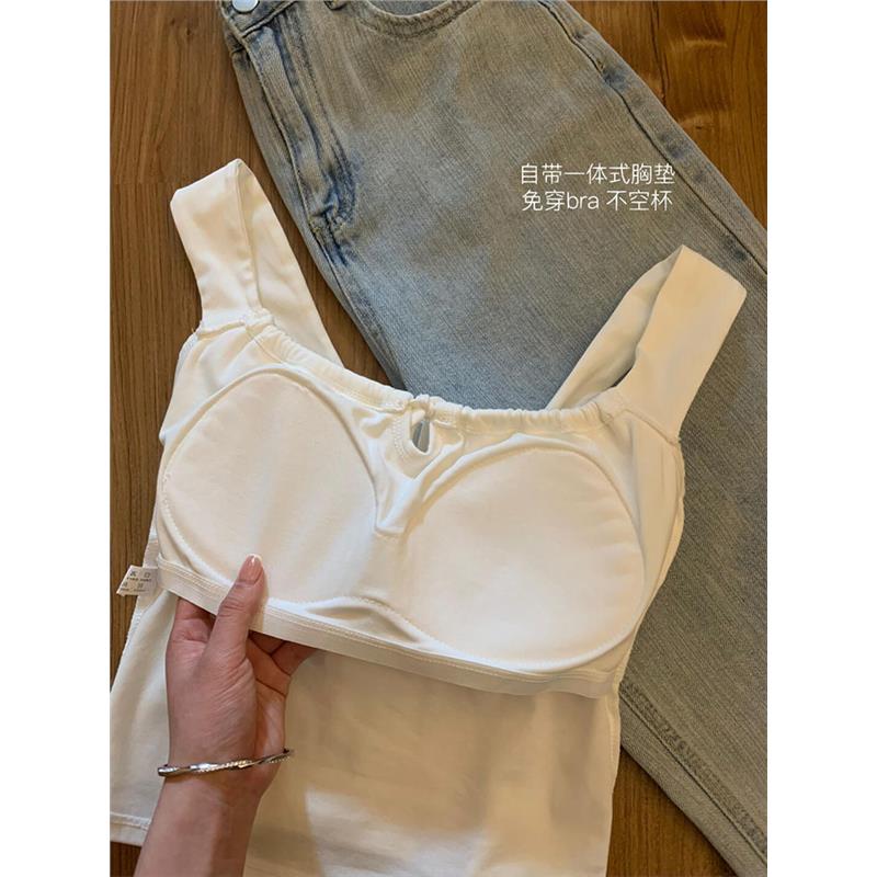 白色打底小吊带女带胸垫美背文胸一体背心夏外穿显瘦短款无袖上衣
