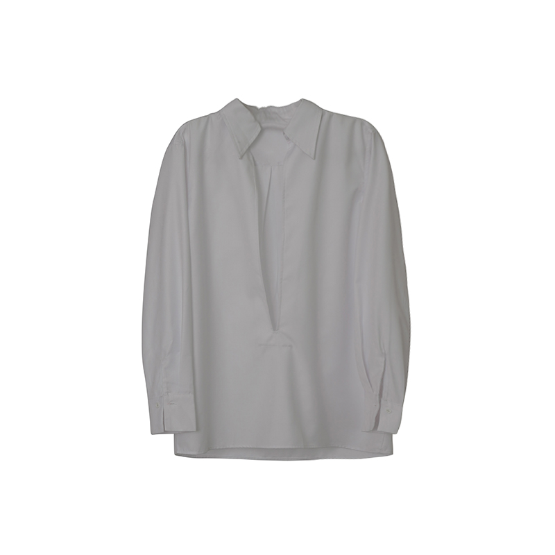 Chris小倩<至简时尚>法式经典内搭深v叠穿休闲白衬衫外套上衣女