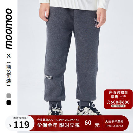 美特斯邦威童装长裤男童冬季新款新年贺岁加绒宽松舒适休闲运动裤