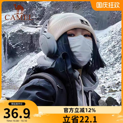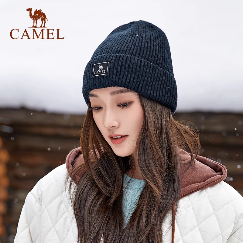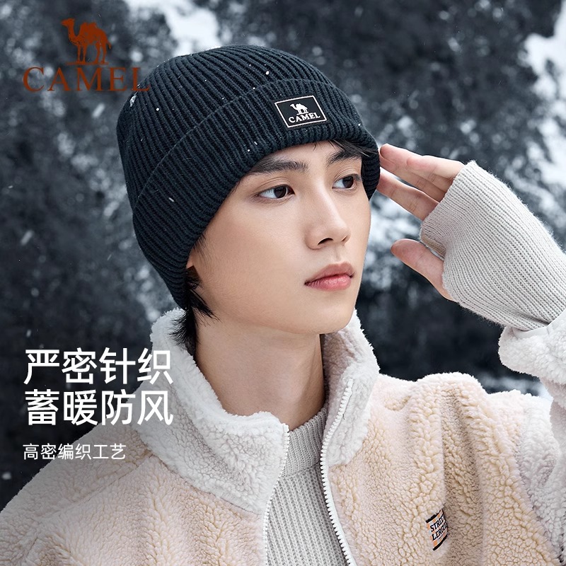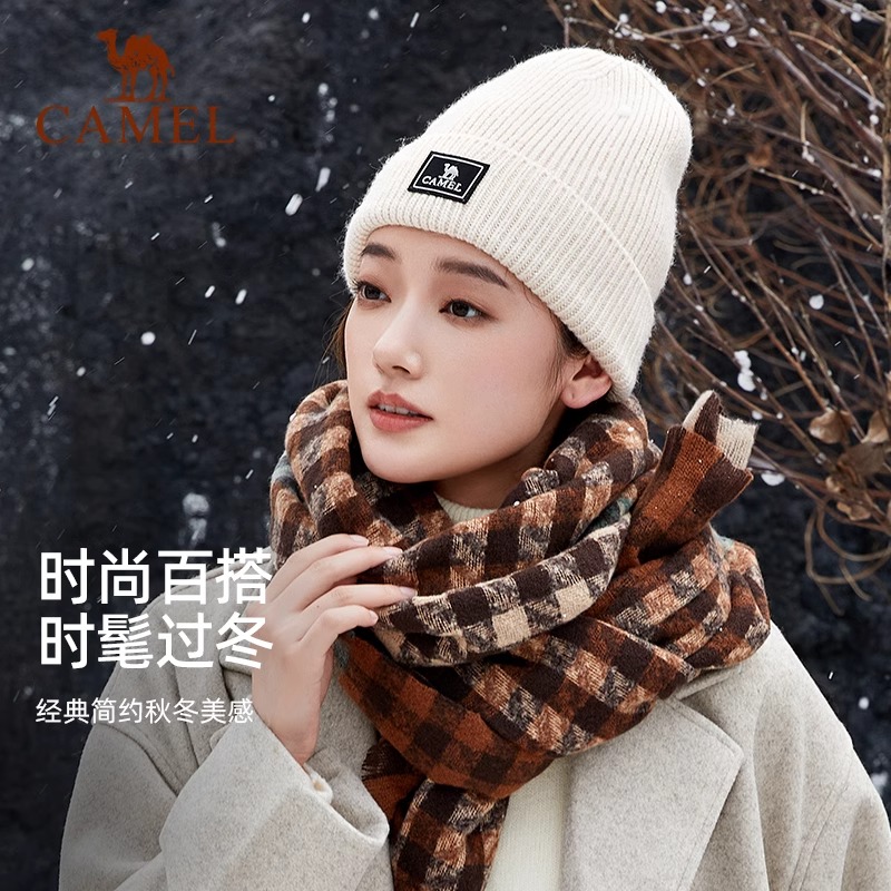 骆驼针织帽女秋冬季百搭保暖月子帽防风大头围白色毛线帽子冷帽男