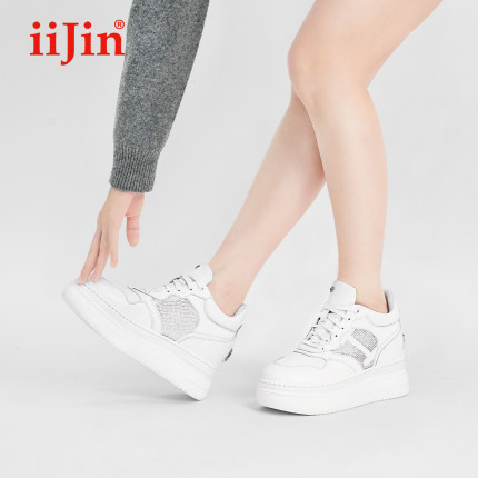 【明星同款】iiJin艾今9cm厚底内增高超轻烫钻休闲小白鞋女283GNI