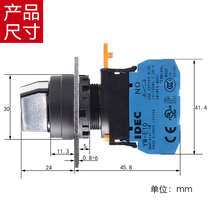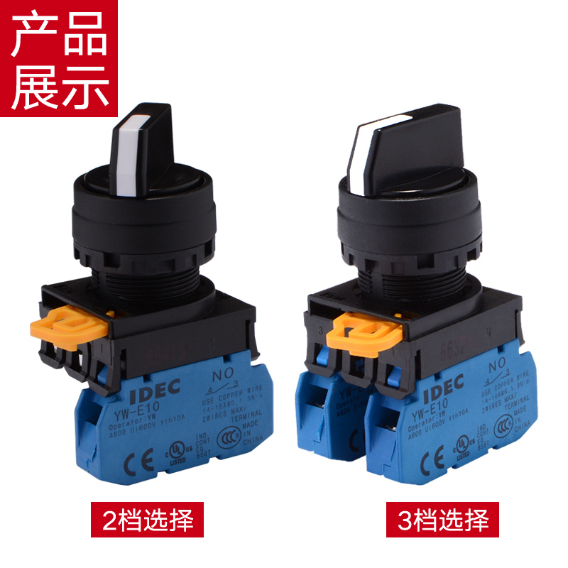 IDEC和泉选择开关YW1S-2E10/3E20旋钮2档旋转自复位常开3位22mm