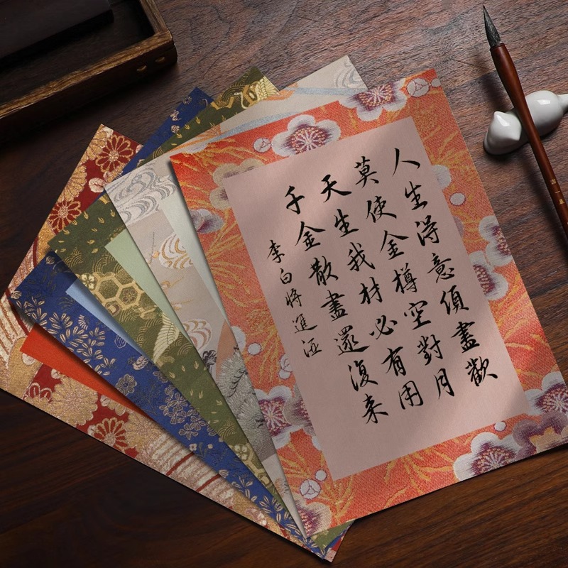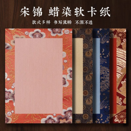 景阳阁宋锦蜡染A4软卡宣纸半生半熟微喷宣纸小楷毛笔字书法作品纸书法卡纸信笺纸小品古风印花装裱宣纸卡纸