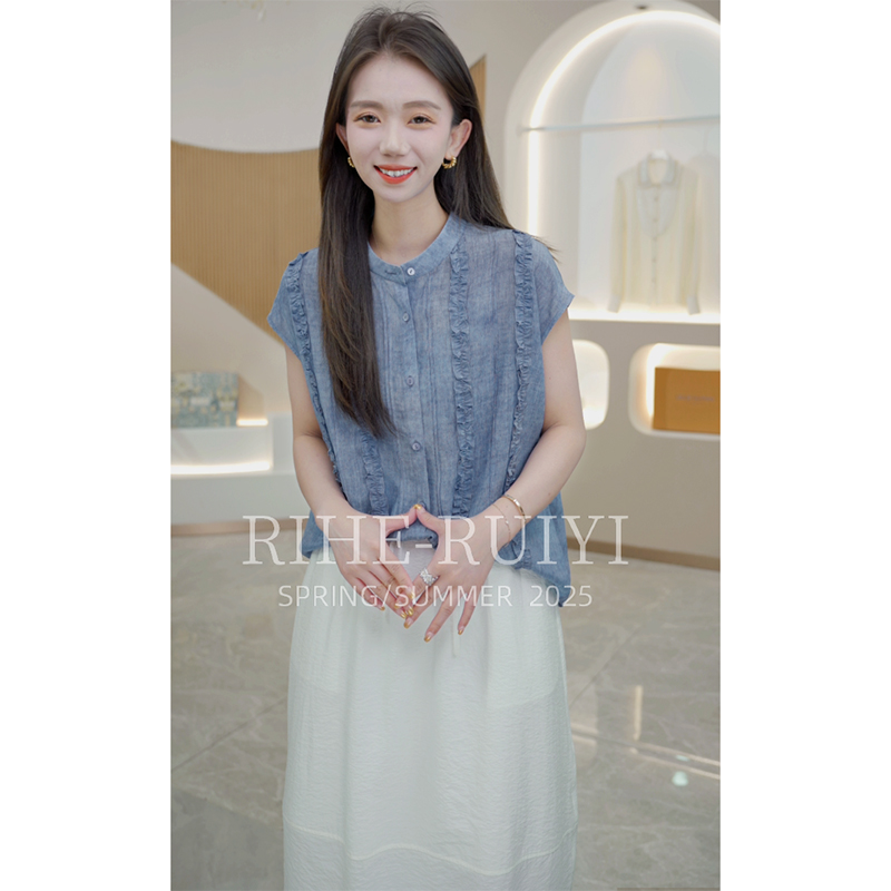 R H 薄款印花真丝上衣女短袖夏季2025新款气质宽松高端桑蚕丝衬衫