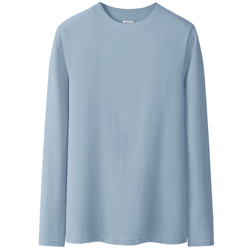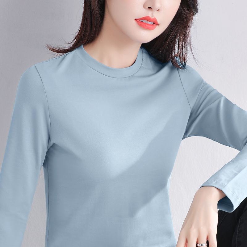 烟蓝色纯棉半高领打底衫女内搭秋冬新款纯色修身百搭长袖t恤女薄