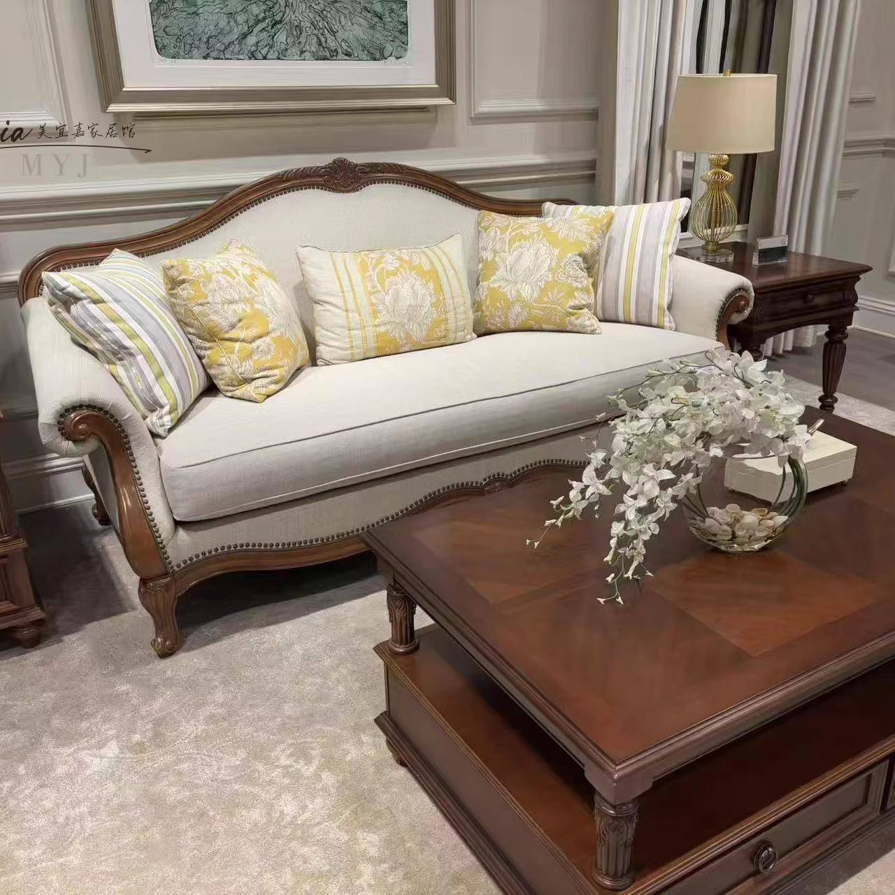新维多利亚美式art布艺沙发椅客厅休闲三人沙发实木单人装饰椅子