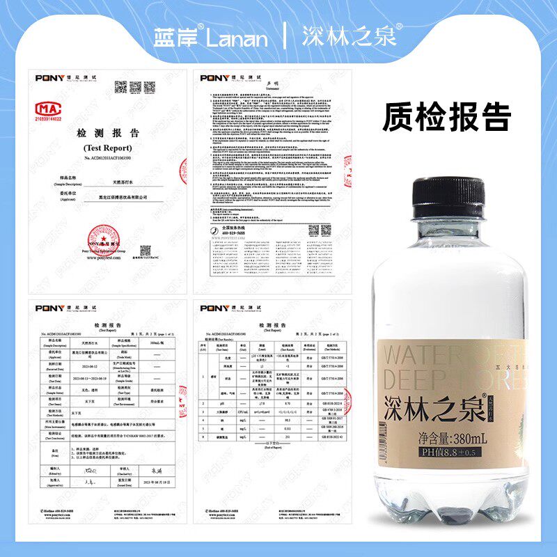 蓝岸深林之泉天然苏打水无糖无气饮用克东水源地弱碱性整箱PH8·8