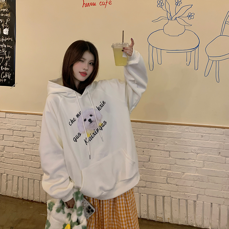 2025胖晶晶大码女装卫衣秋冬可爱印花宽松型连帽卫衣 加绒加厚
