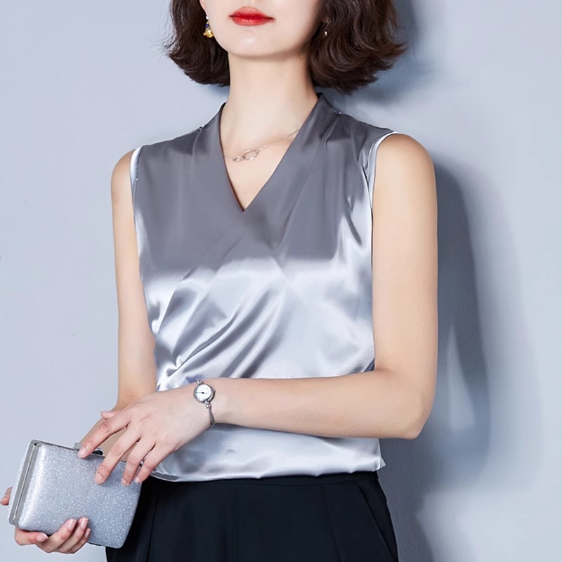 白色无袖缎面西装内搭小背心女外穿夏季新款职业吊带搭打底衫宽松