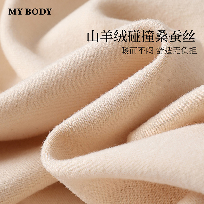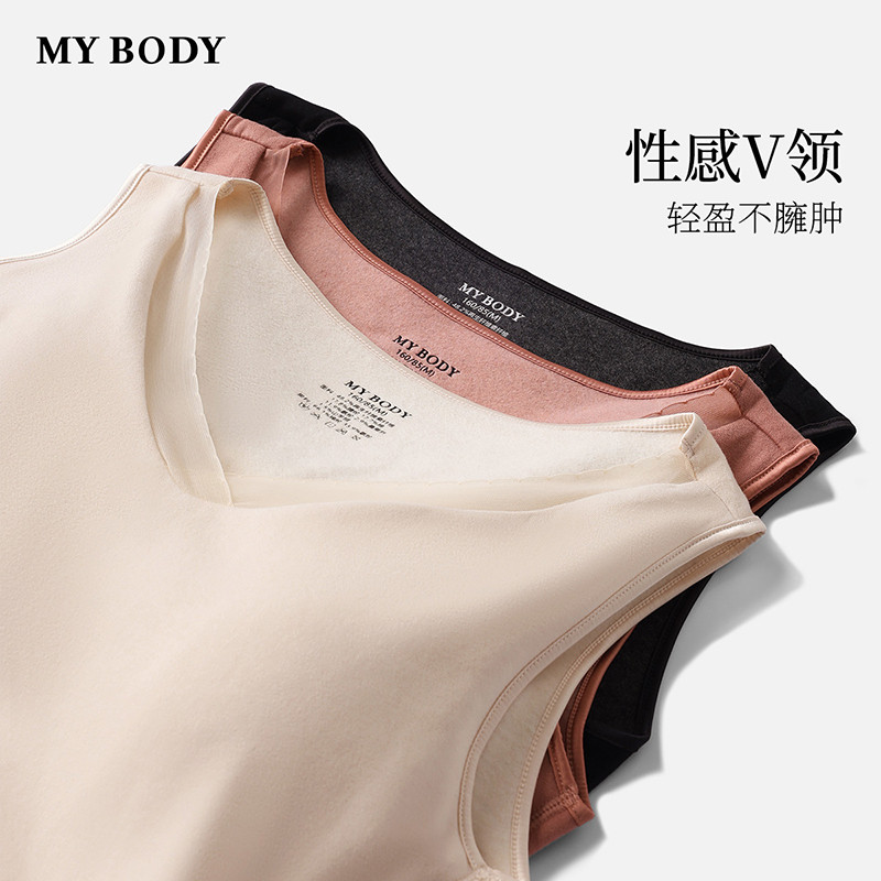 商场同款MYBODY2025冬季新款保暖背心女桑蚕丝山羊绒蕾丝V领打底