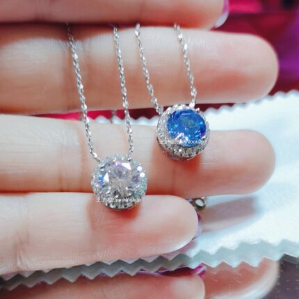 S925纯银18K镀金高碳钻石蓝色海洋满天星钻项链女 吊坠锁骨链礼物