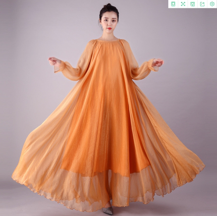海边度假超仙金丝雪纺纯色连衣裙