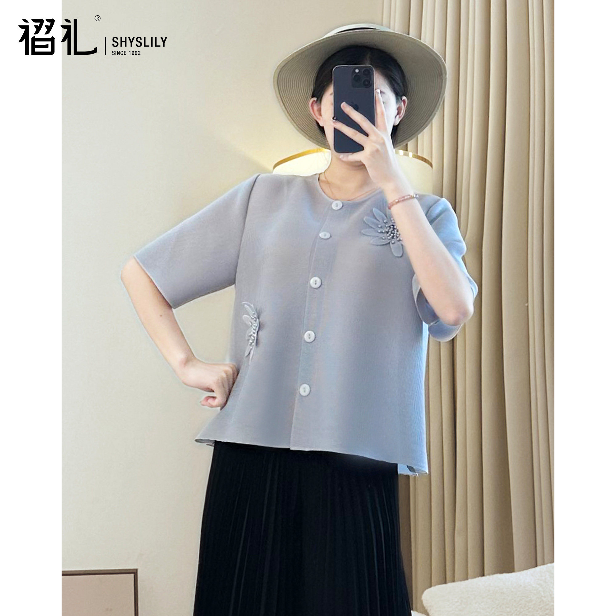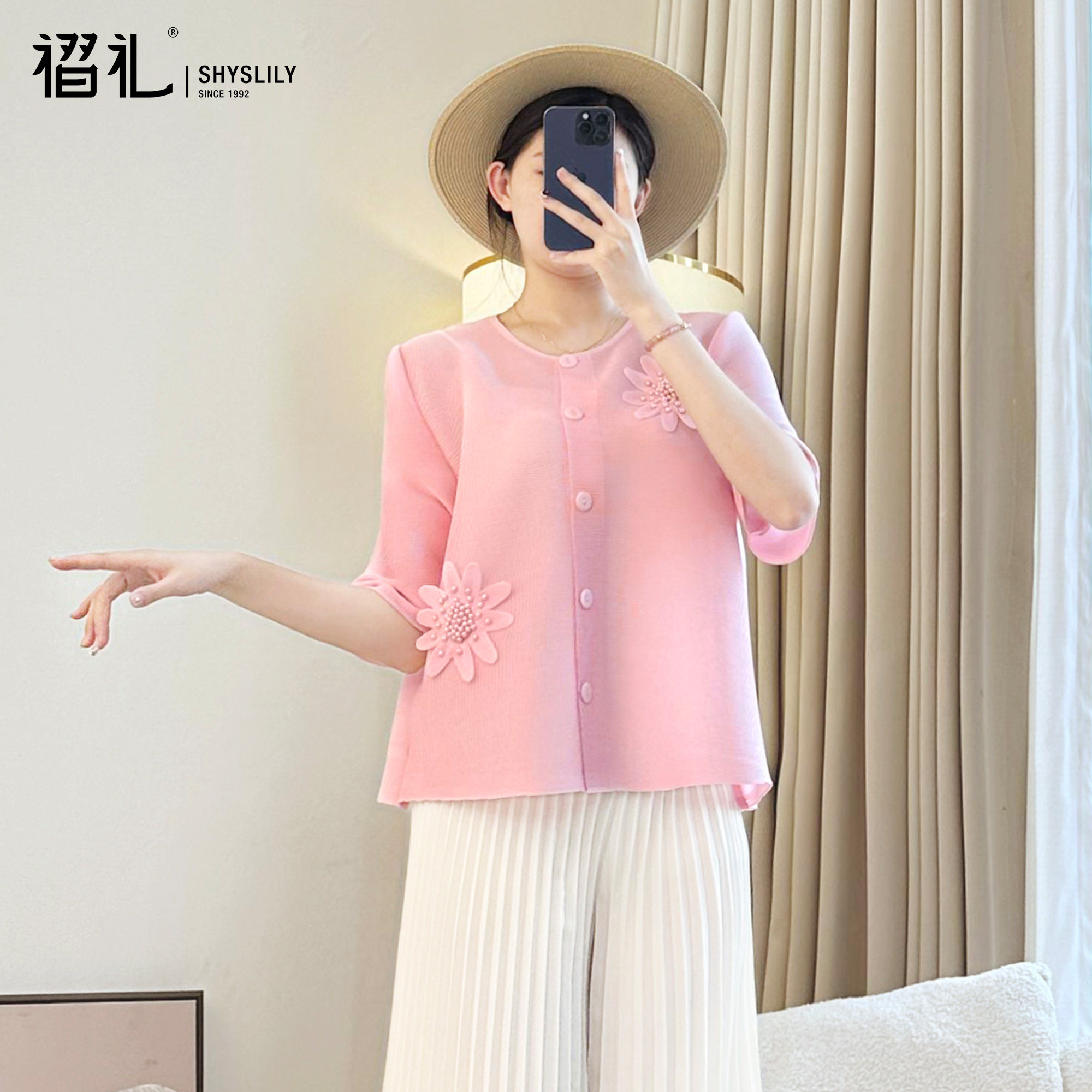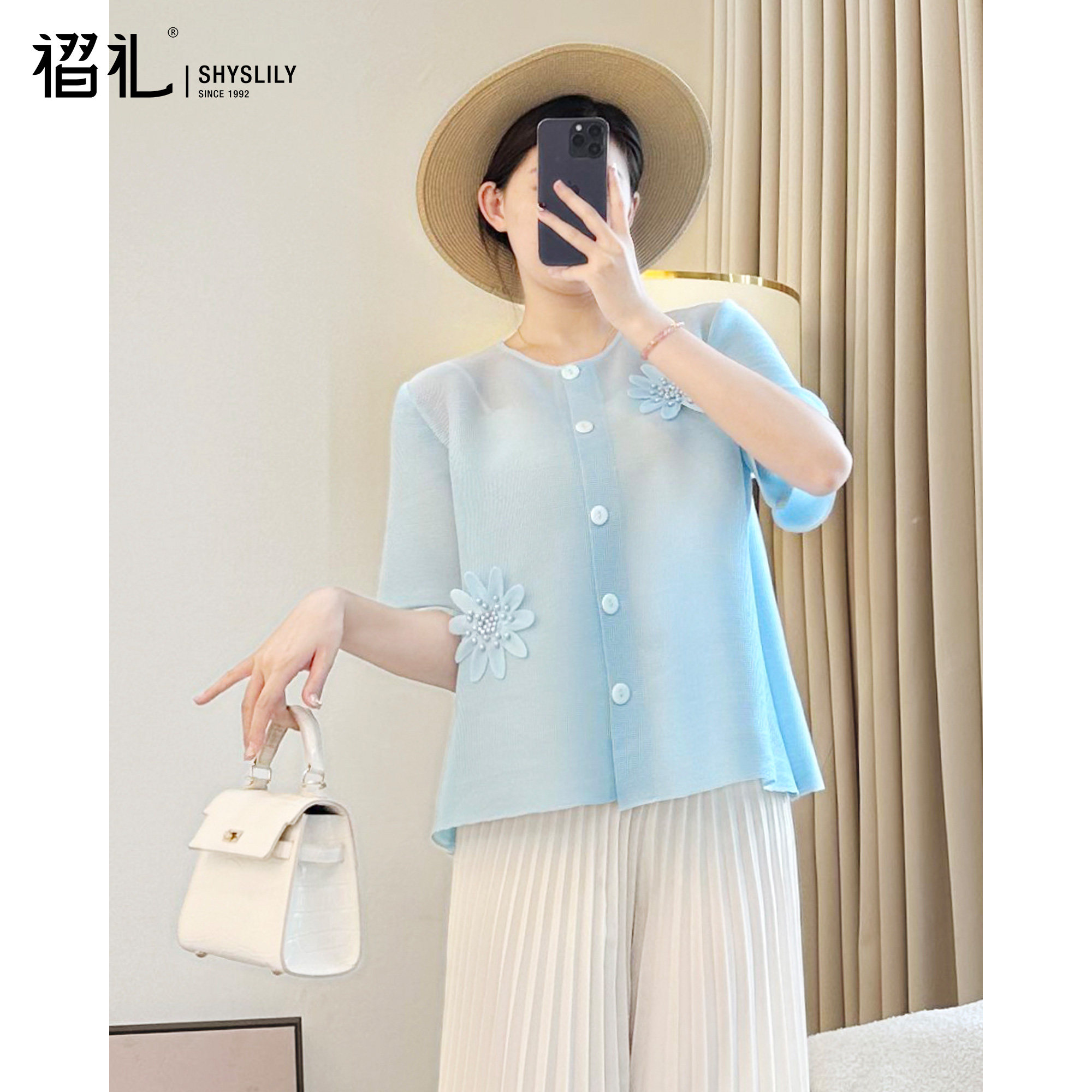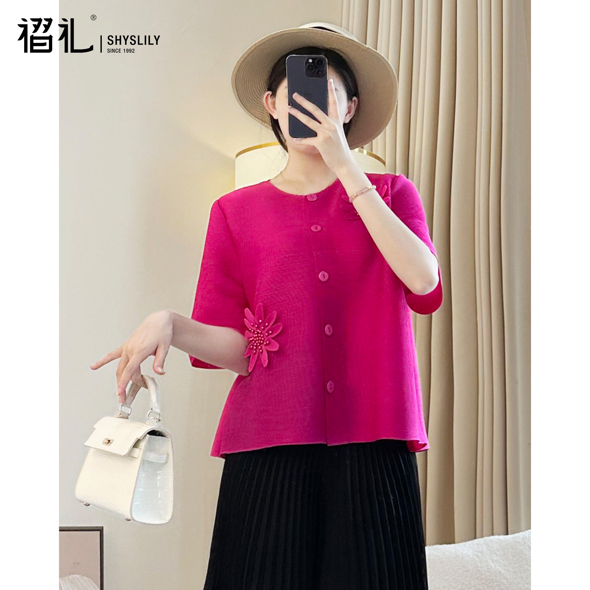 三宅褶皱雪纺衫女夏季短上衣t恤