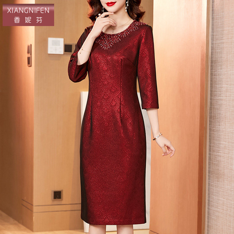 香妮芬高端奢华精致喜婆婆宴会装2026新款春秋妈妈婚宴礼服连衣裙