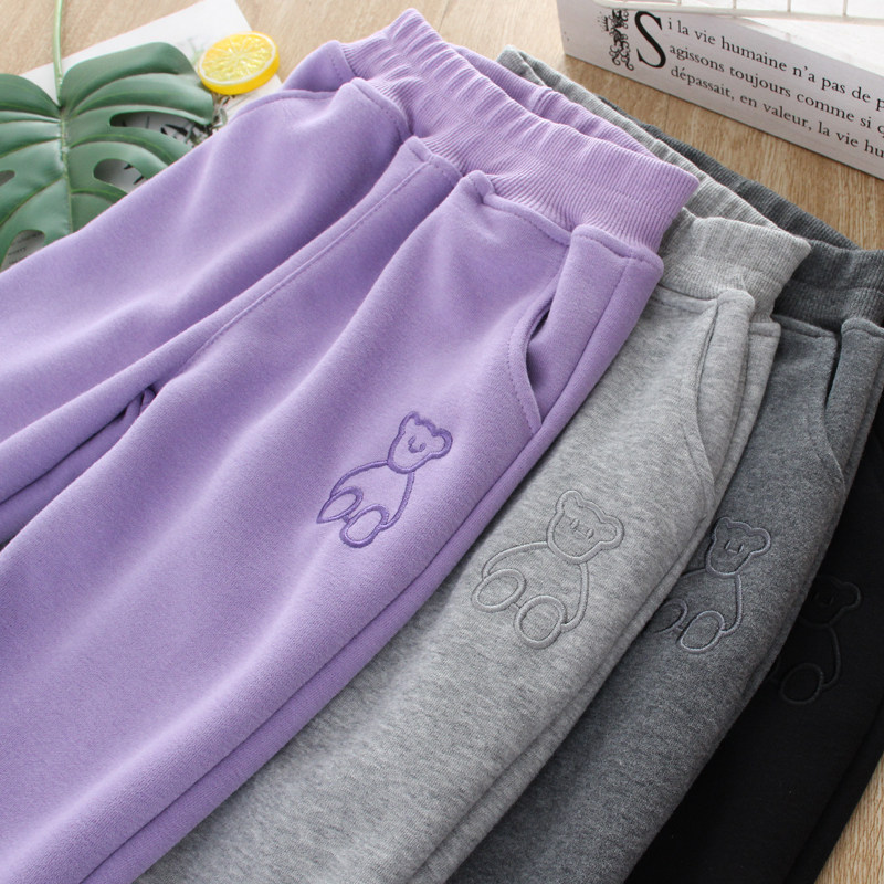 儿童纯棉双层运动裤男女童宽松加厚夹裤宝宝夹棉棉裤长裤子冬新款