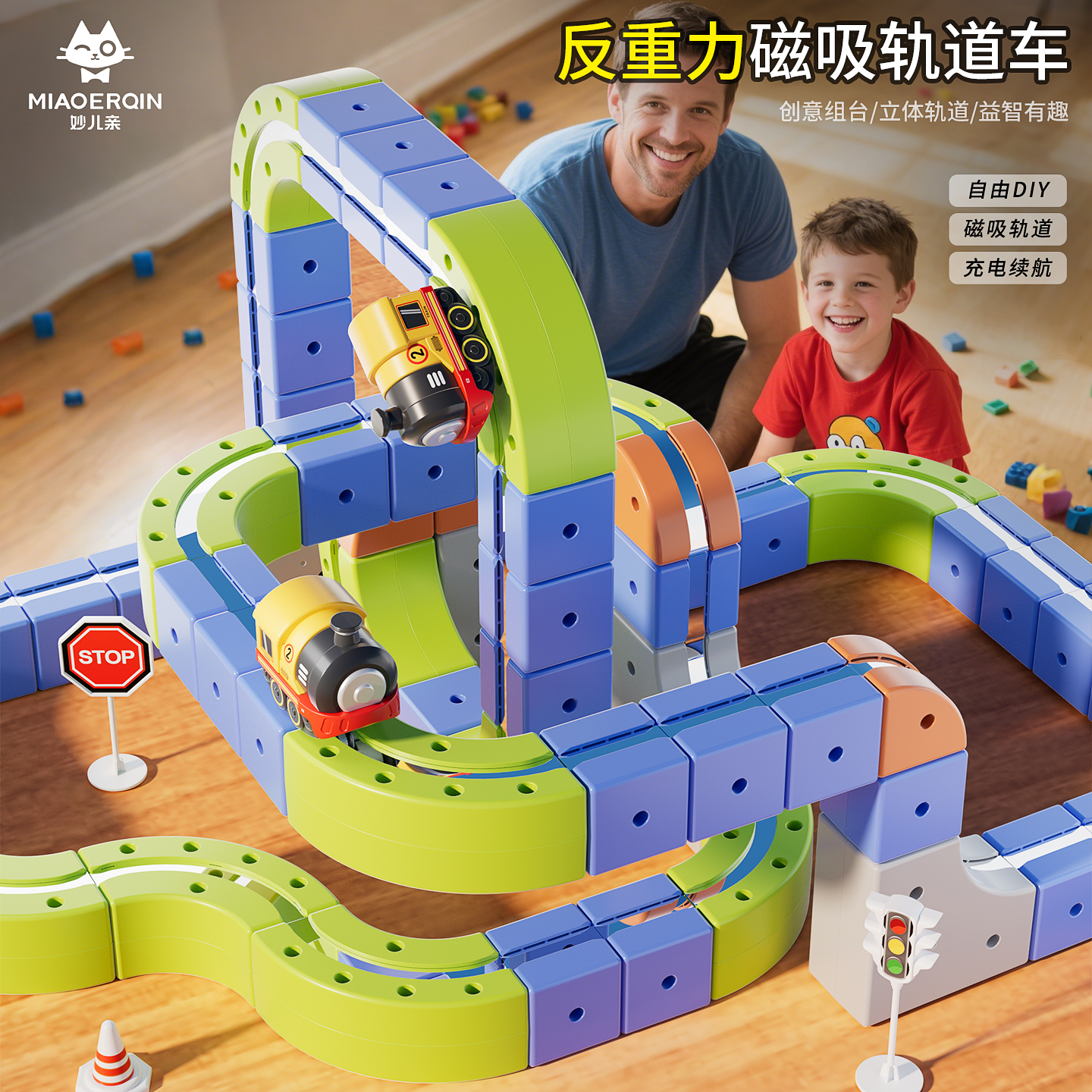 儿童磁吸轨道小火车男孩生日礼物10电动玩具4岁女孩益智6拼搭积木