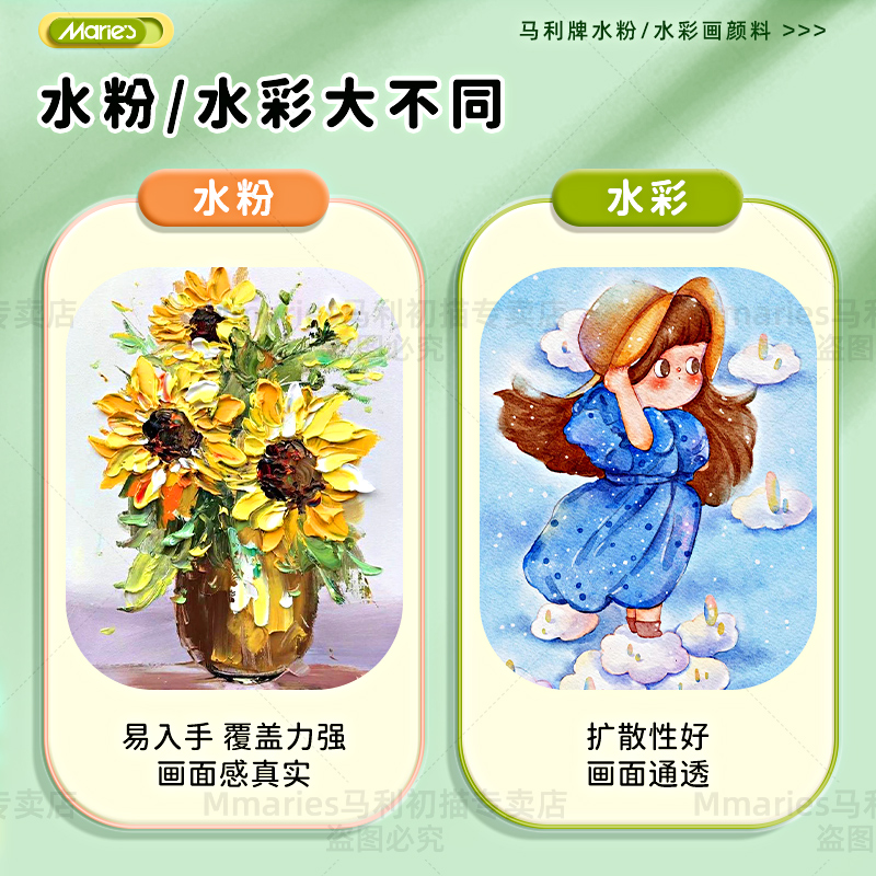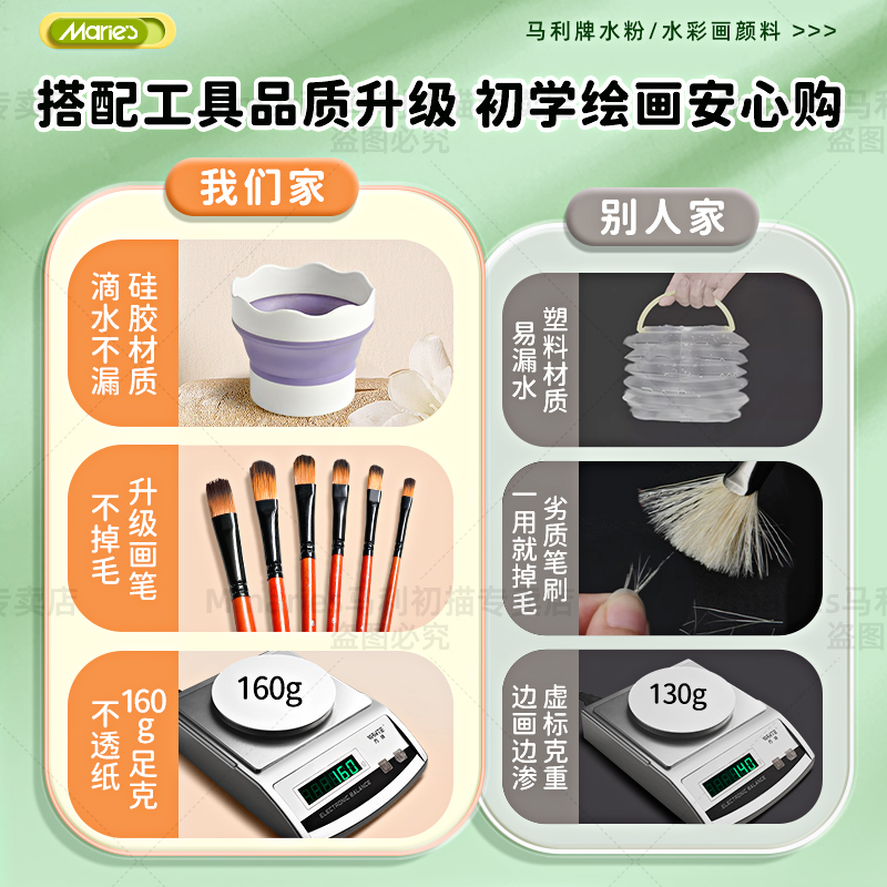 马利牌水粉水彩画颜料套装 12色24色36色48美术生专业用儿童无毒可水洗初中小学生幼儿园初学者工具二十四绘