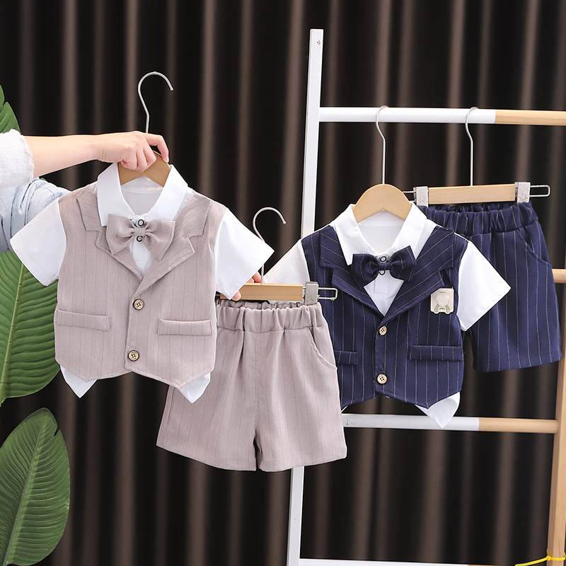 男童夏季西装儿童短袖套装洋气1一3岁宝宝礼服拍照2025新款小童装
