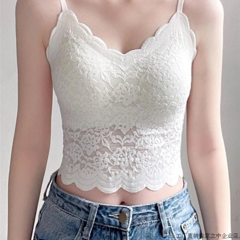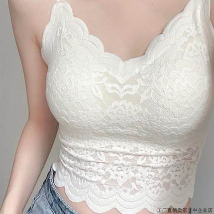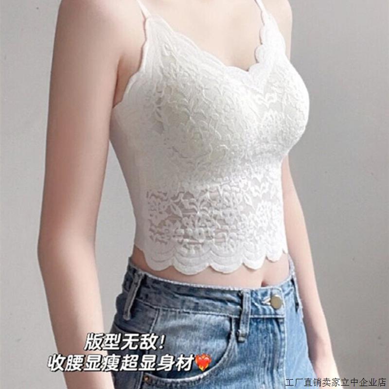 白色v领蕾丝吊带背心女内搭带胸垫美背文胸一体打底外穿无袖上衣
