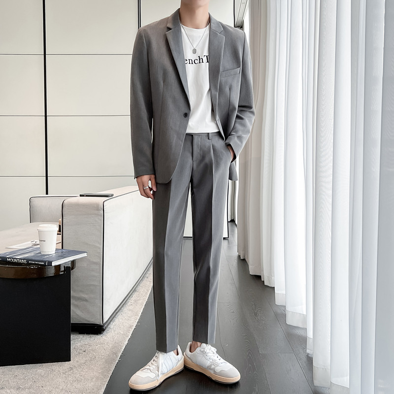纯色休闲西装男垂感外套潮流痞帅微宽松西服搭配修身西裤一套装潮