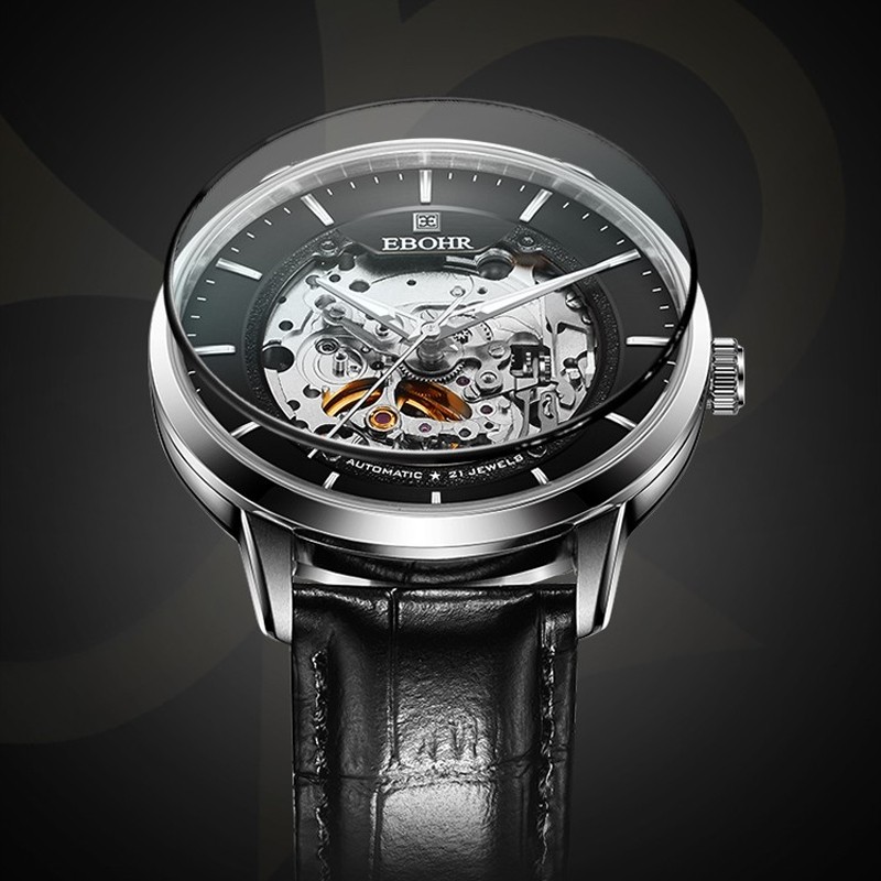 依波(EBOHR)大师系列5646时尚潮酷耀黑全镂空全自动机械男表