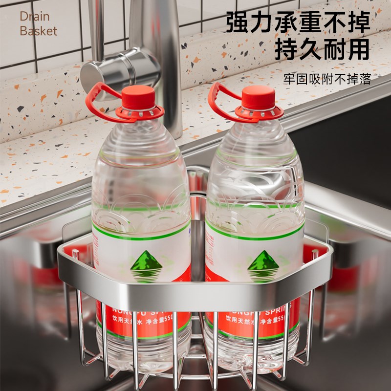 不锈钢厨房水槽转角海绵收纳篮浴室免钉置物架三角形免打孔沥水架