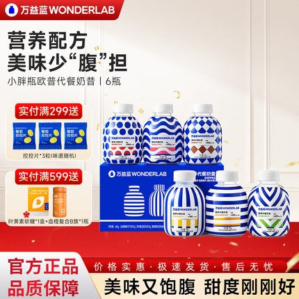 万益蓝WonderLab代餐奶昔经典营养饱腹低脂早餐高蛋白75g*6瓶正品
