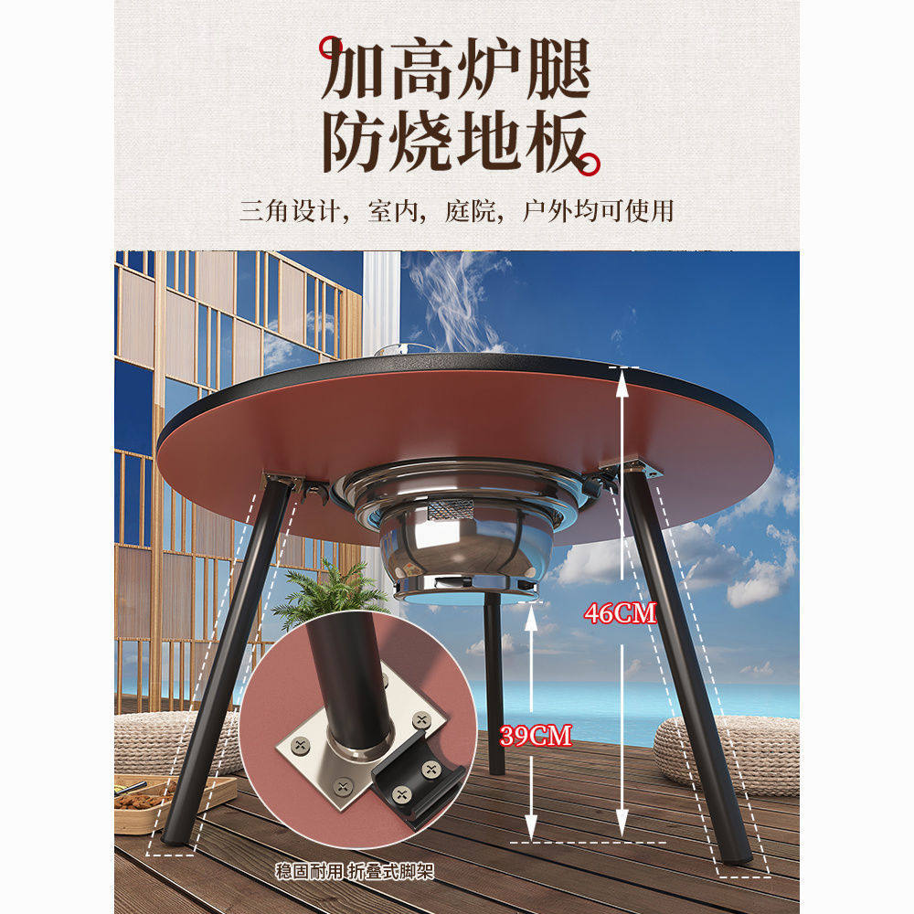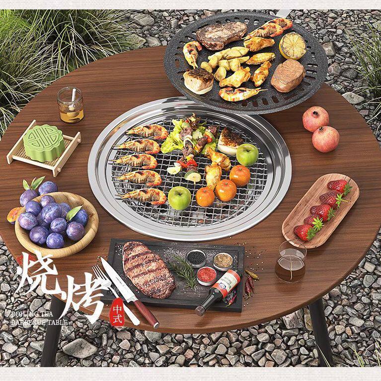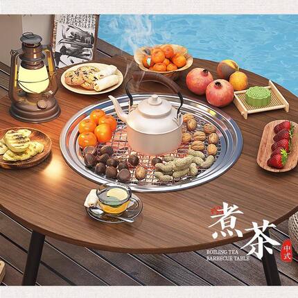 露营围炉煮茶桌子火锅烧烤桌冬天实木茶桌中式庭院套装折叠户外