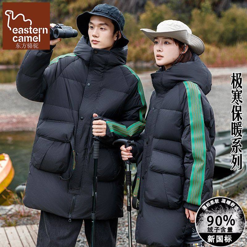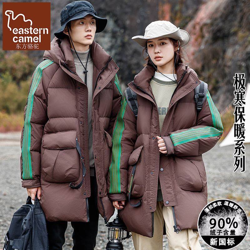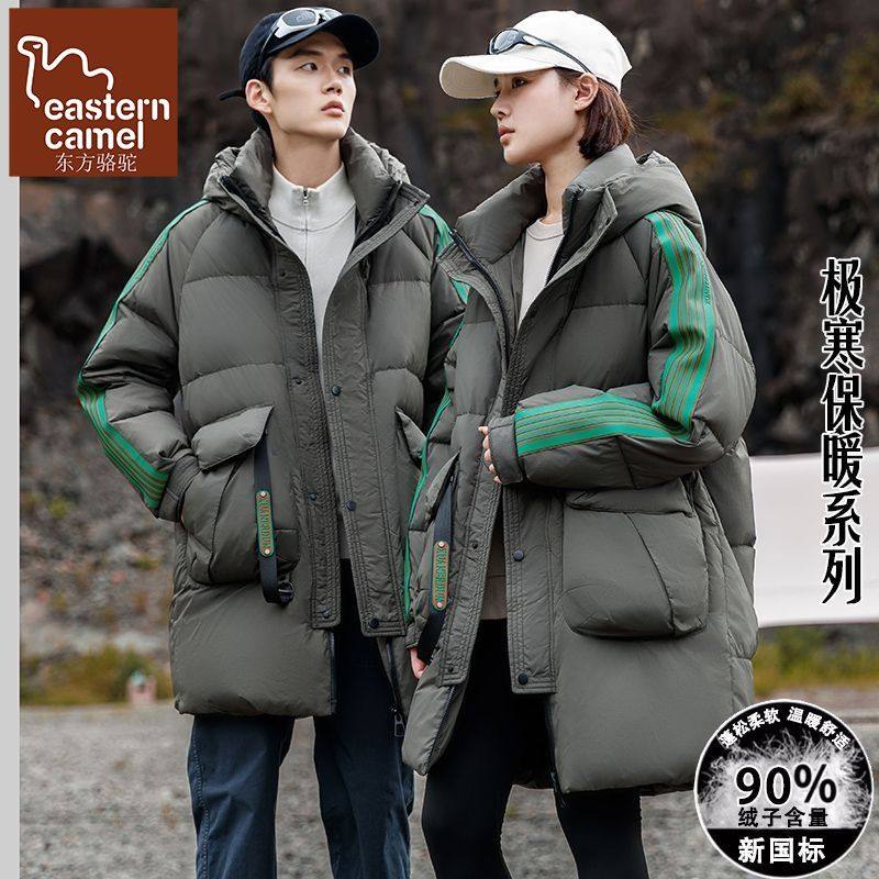 东方骆驼情侣装羽绒服男女同款潮流中长款宽松面包服冬季加厚外套