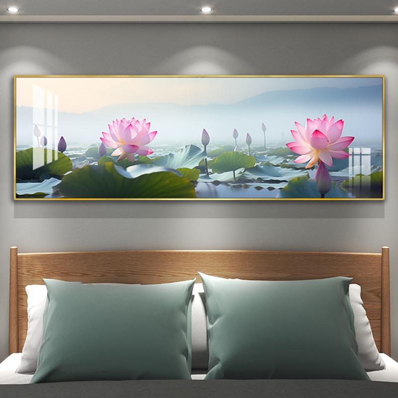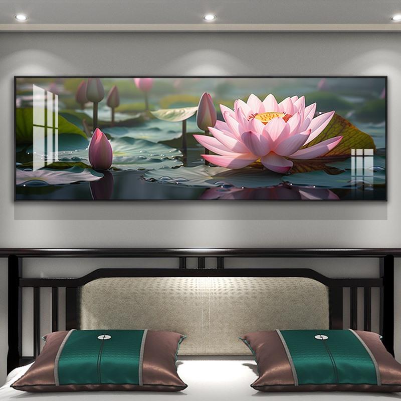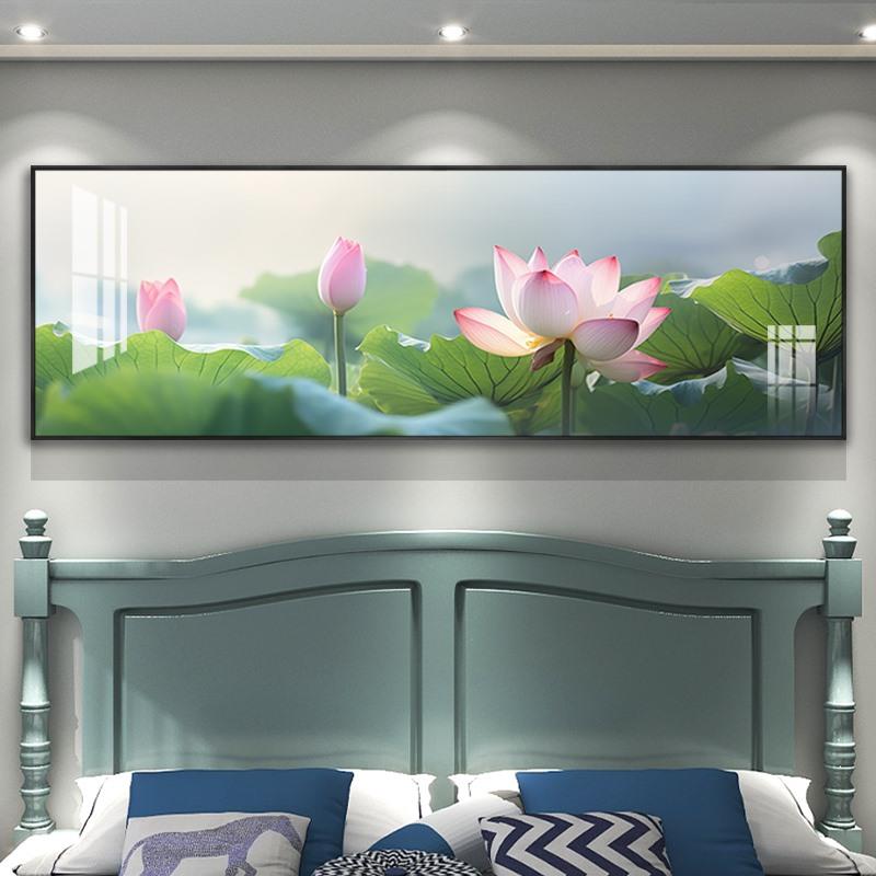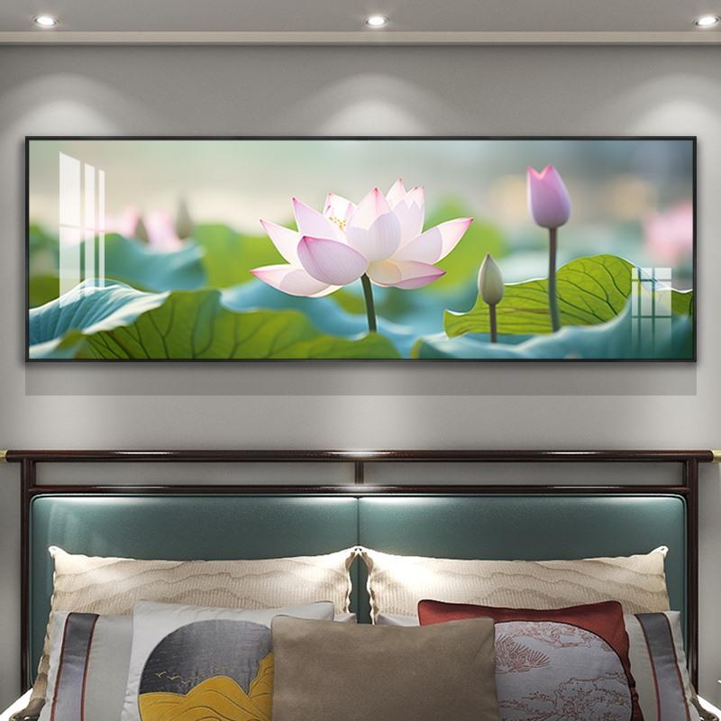现代简约荷花装饰画主卧室床头背景墙挂画轻奢高级感民宿房间壁画