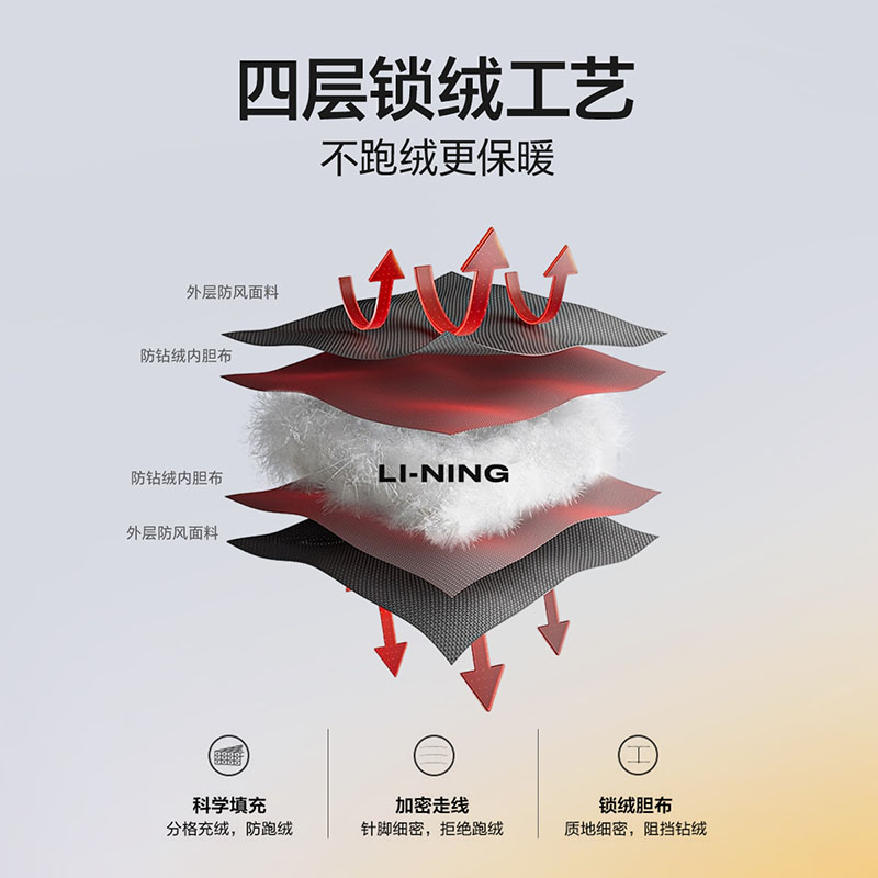 李宁中长款羽绒服男女2025新款运动潮流冬季鸭绒防风加厚保暖外套