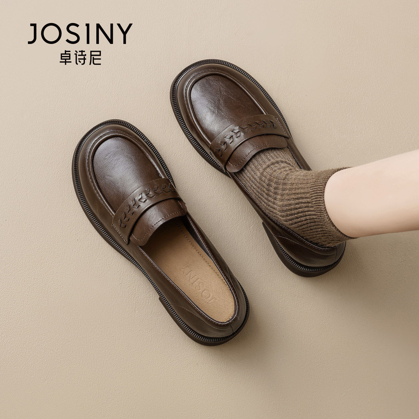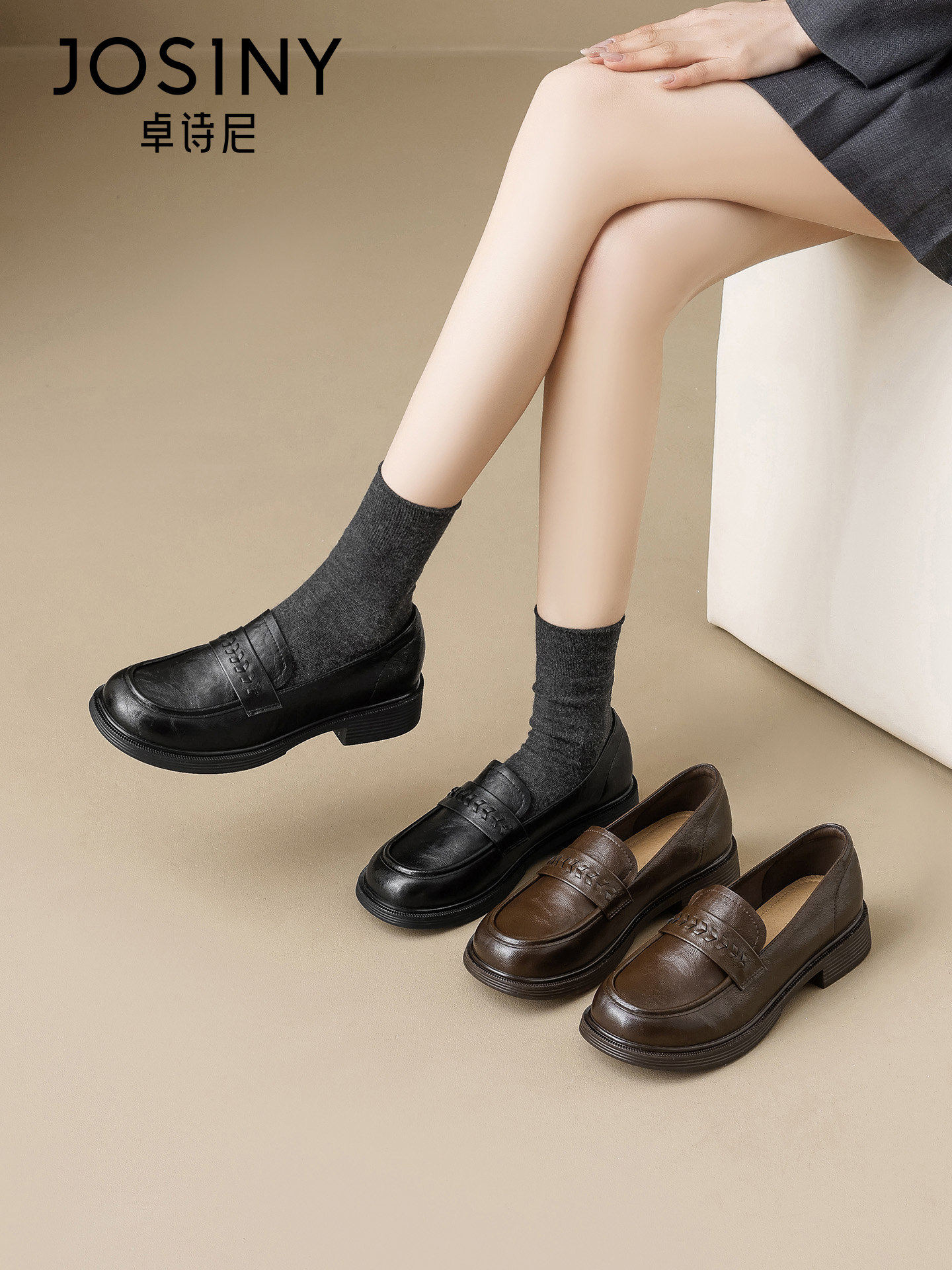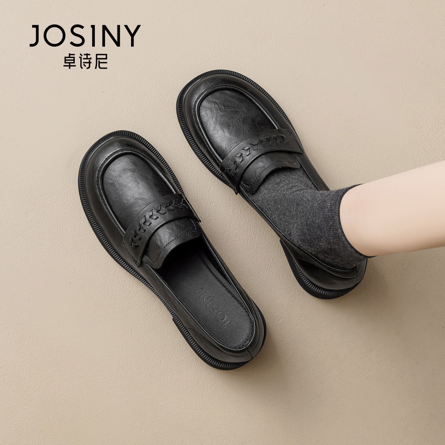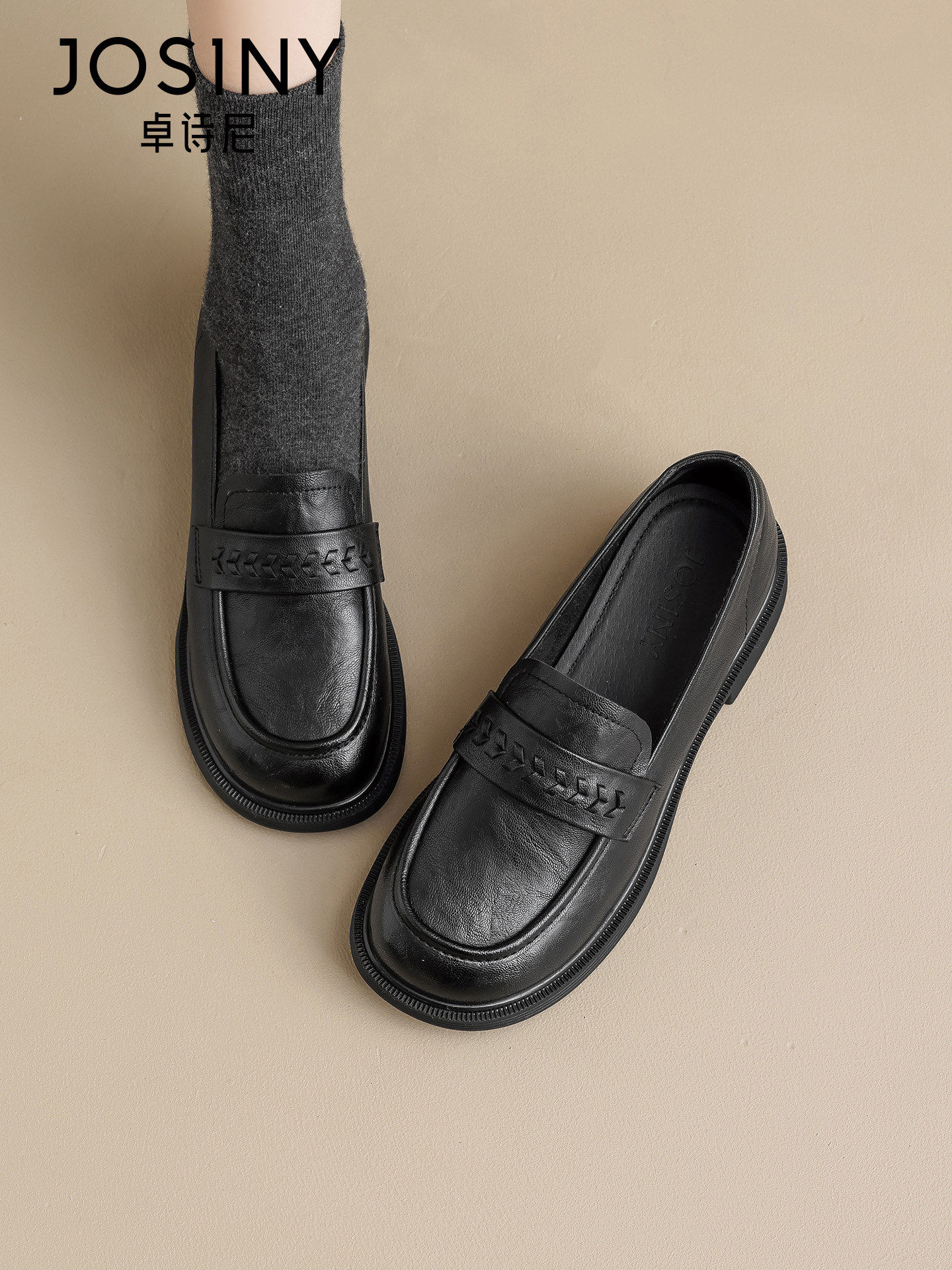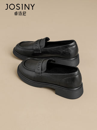 卓诗尼2026春季新款软皮鞋女士英伦风时尚平底舒适乐福鞋单鞋