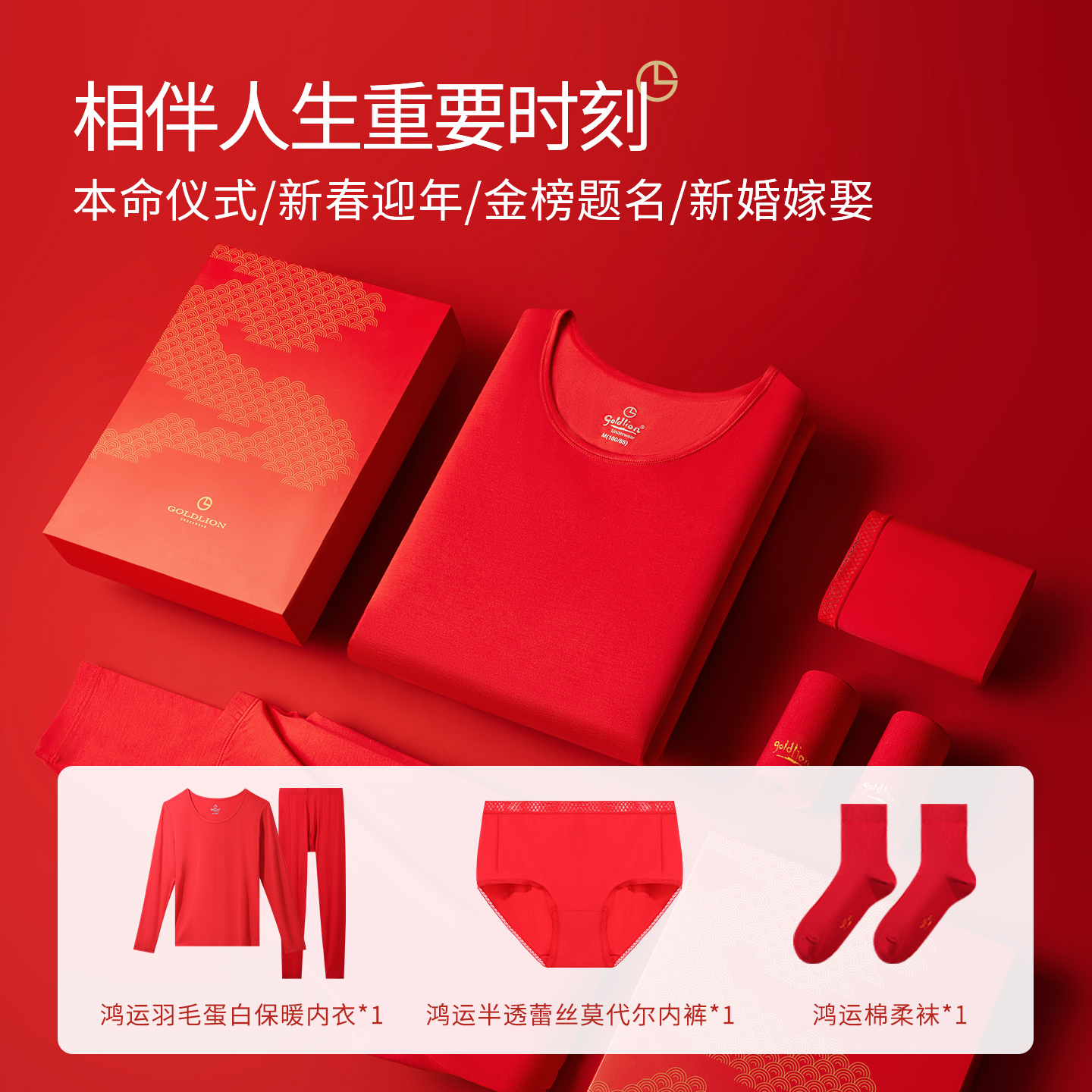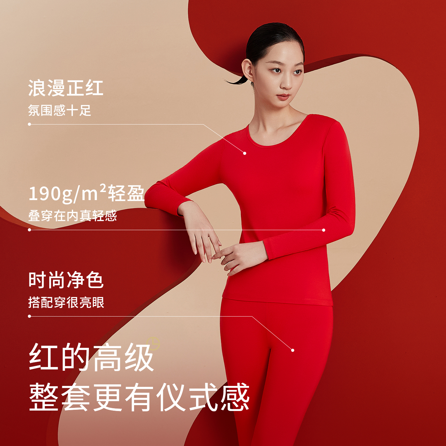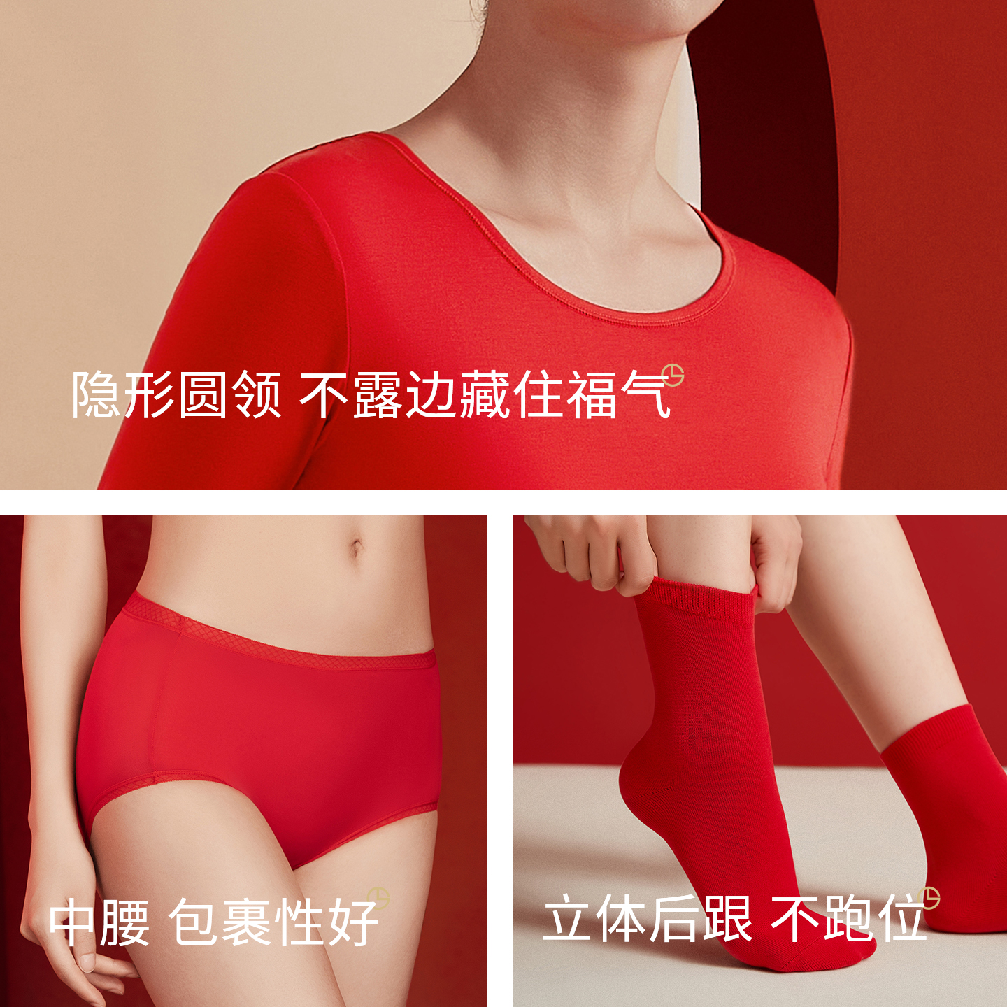 金利来保暖内衣女士本命年大红色结婚德绒发热秋衣秋裤礼盒套装