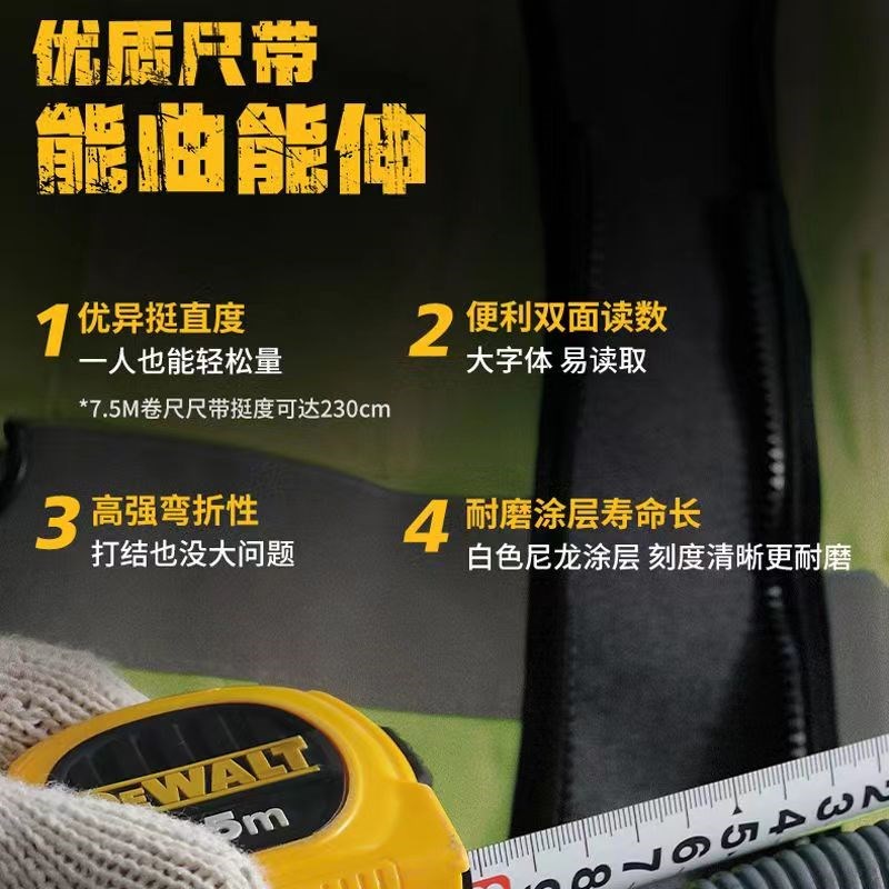 DEWALT得伟双面卷尺5米7.5米卷尺耐磨高精度测量盒尺木工钢尺子