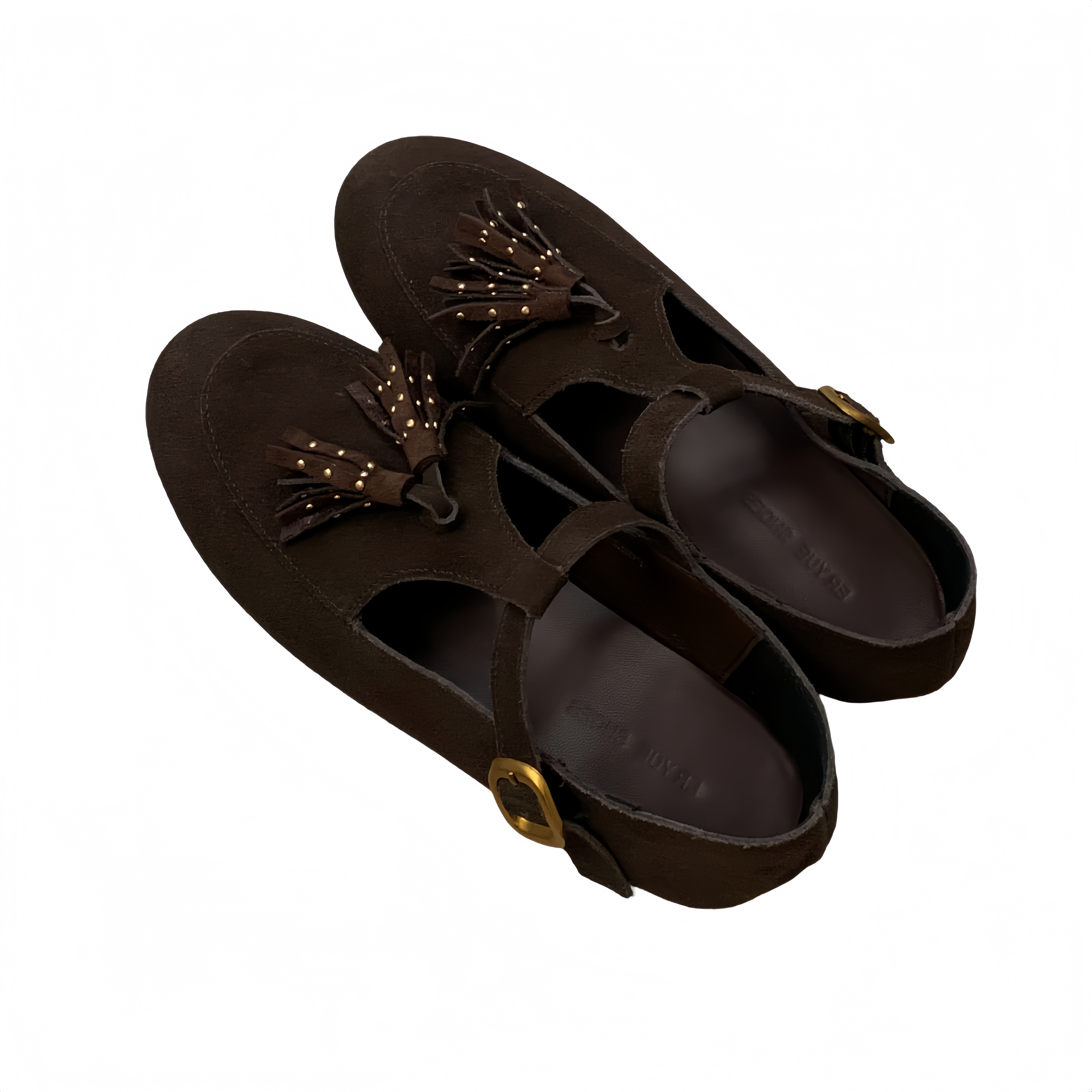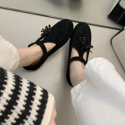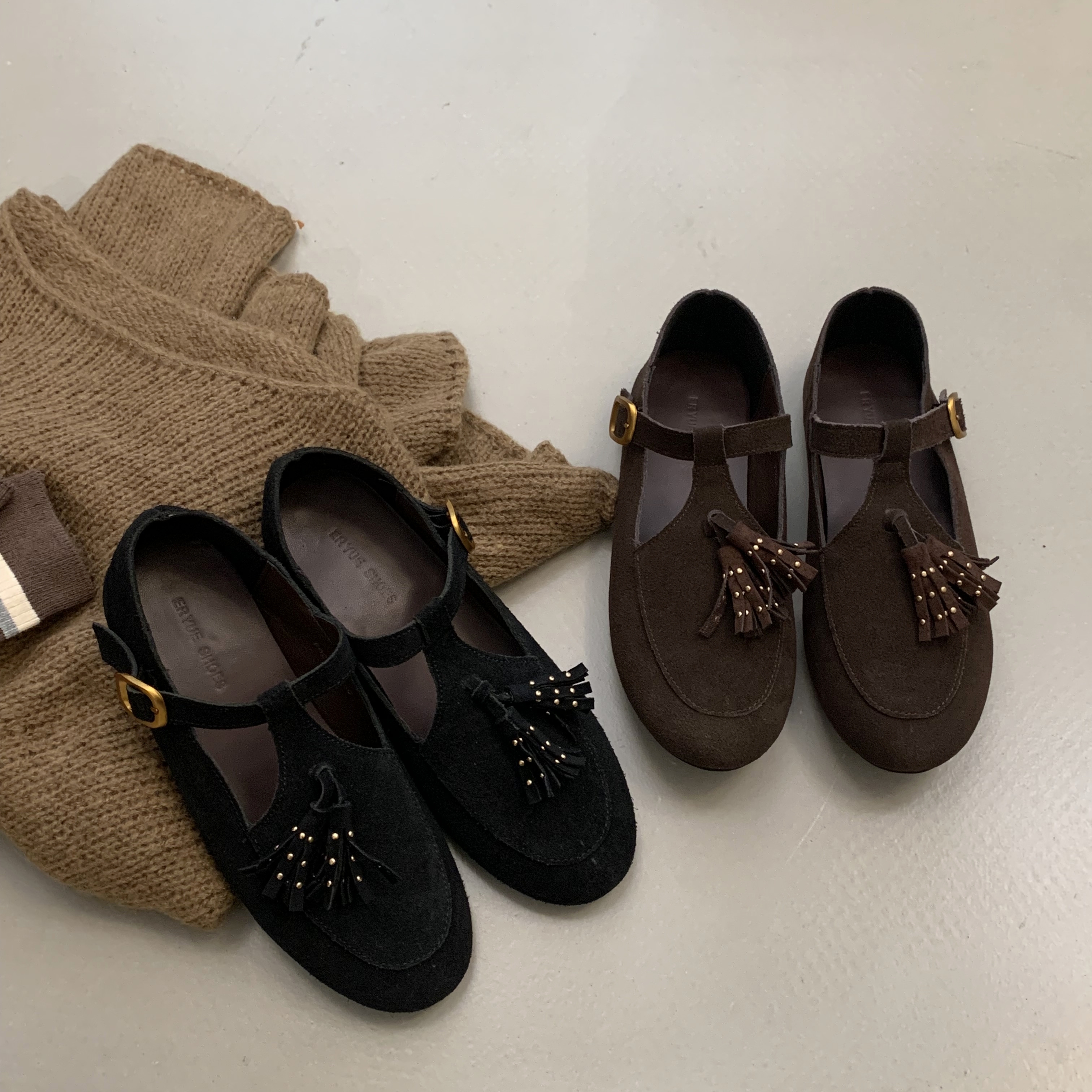 MUMU复古英伦风反绒皮流苏玛丽珍鞋女平底小皮鞋设计感单鞋