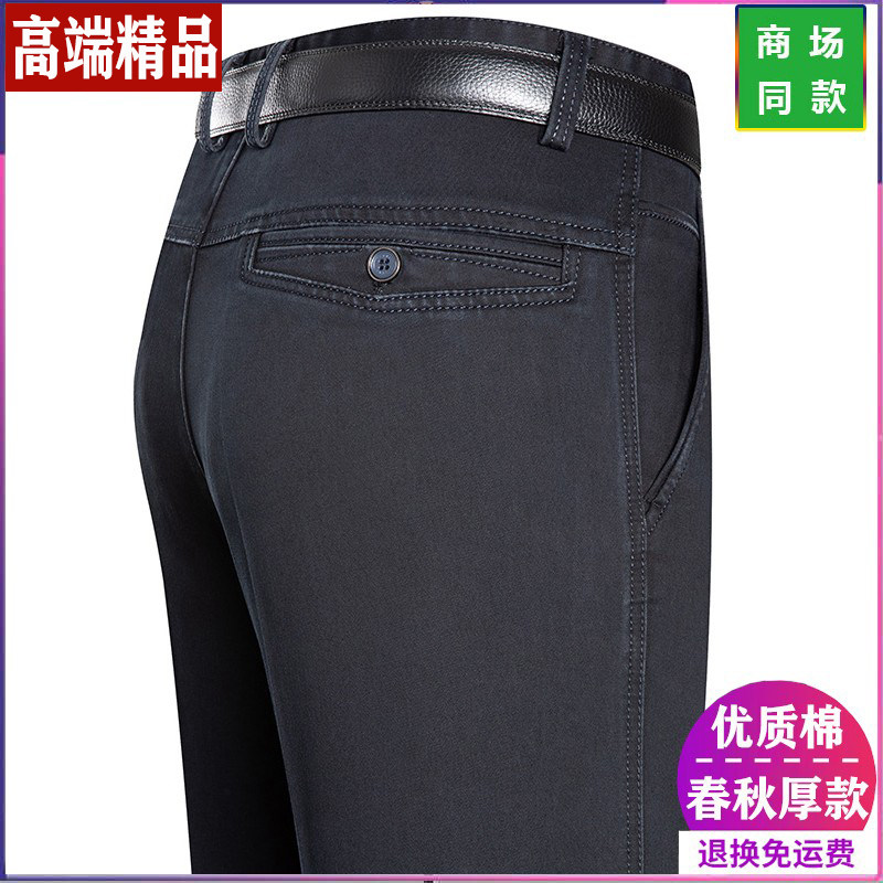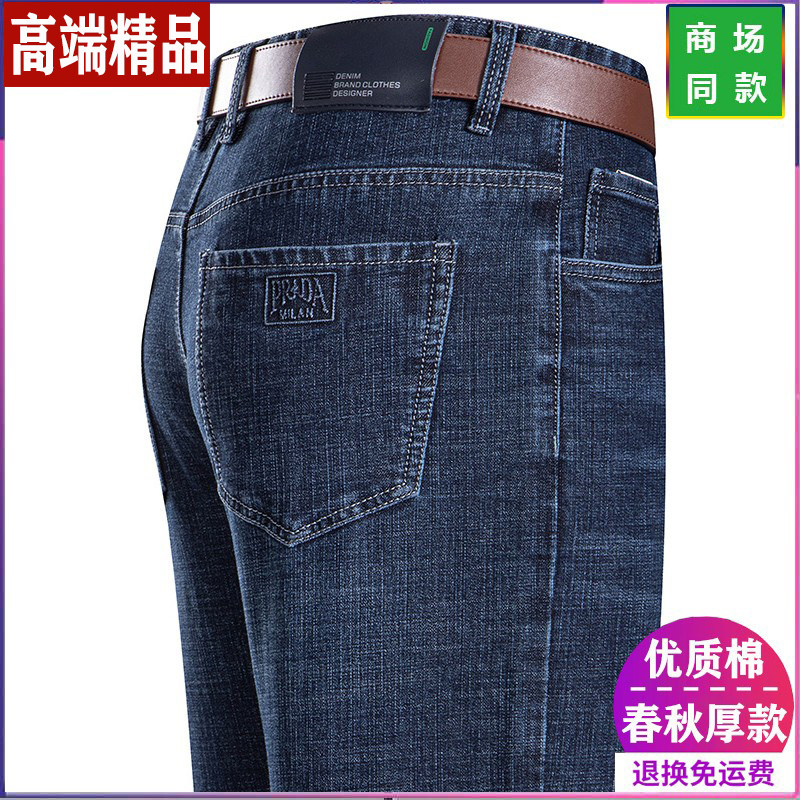 皮尔卡丹男士牛仔裤春秋厚款宽松直筒休闲男裤中老年爸爸高腰长裤
