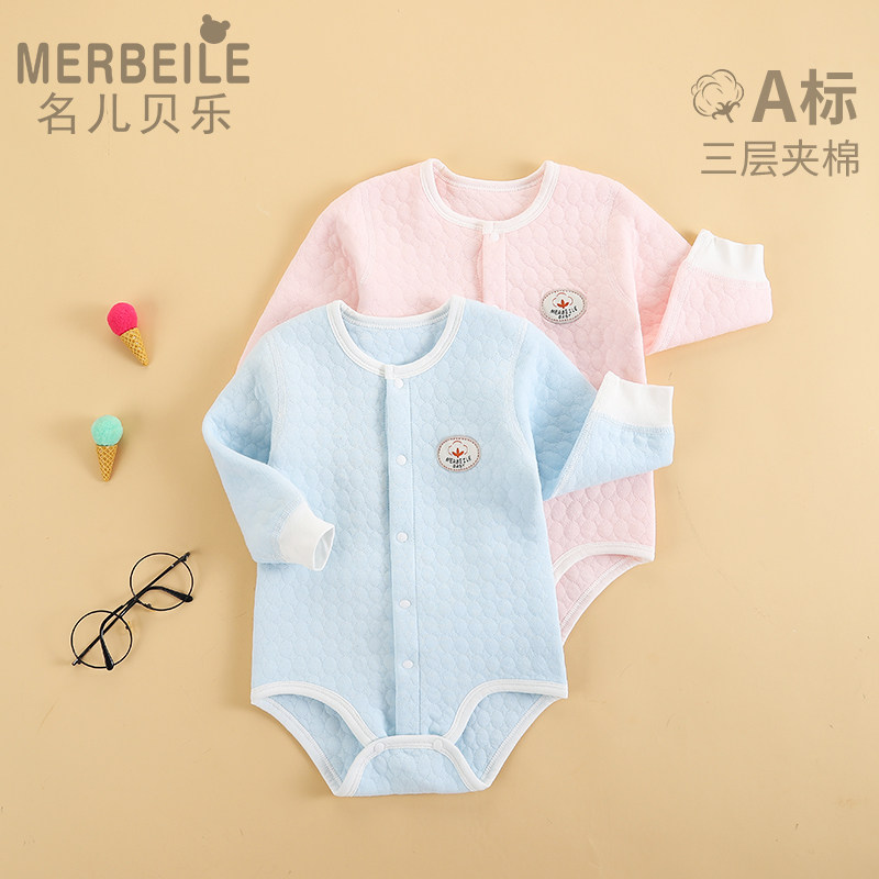 名儿贝乐夹棉保暖三角哈衣包屁衣