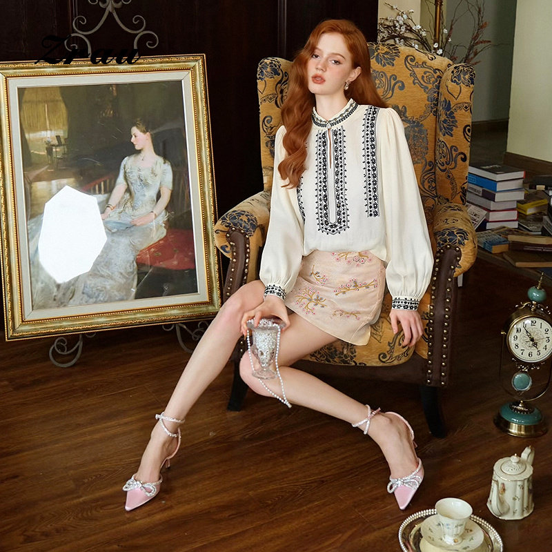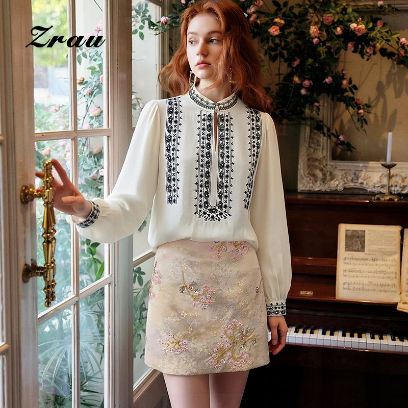 ZRAU【商场同款】洋气优雅钉珠设计半身裙2026春季新款百搭A字裙