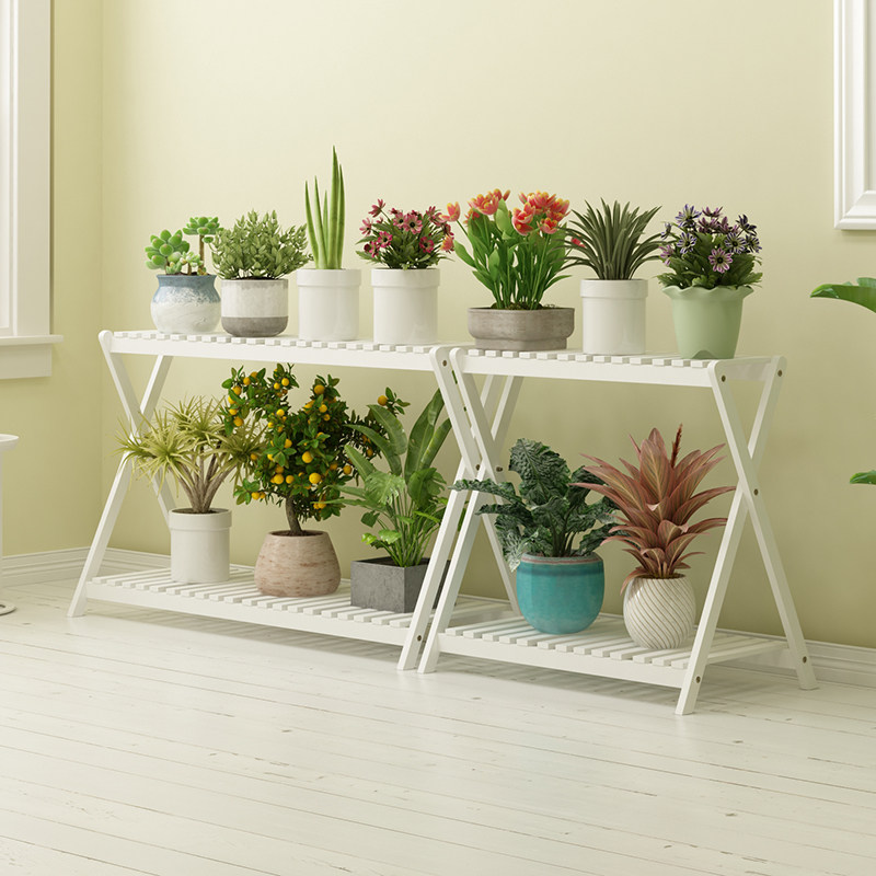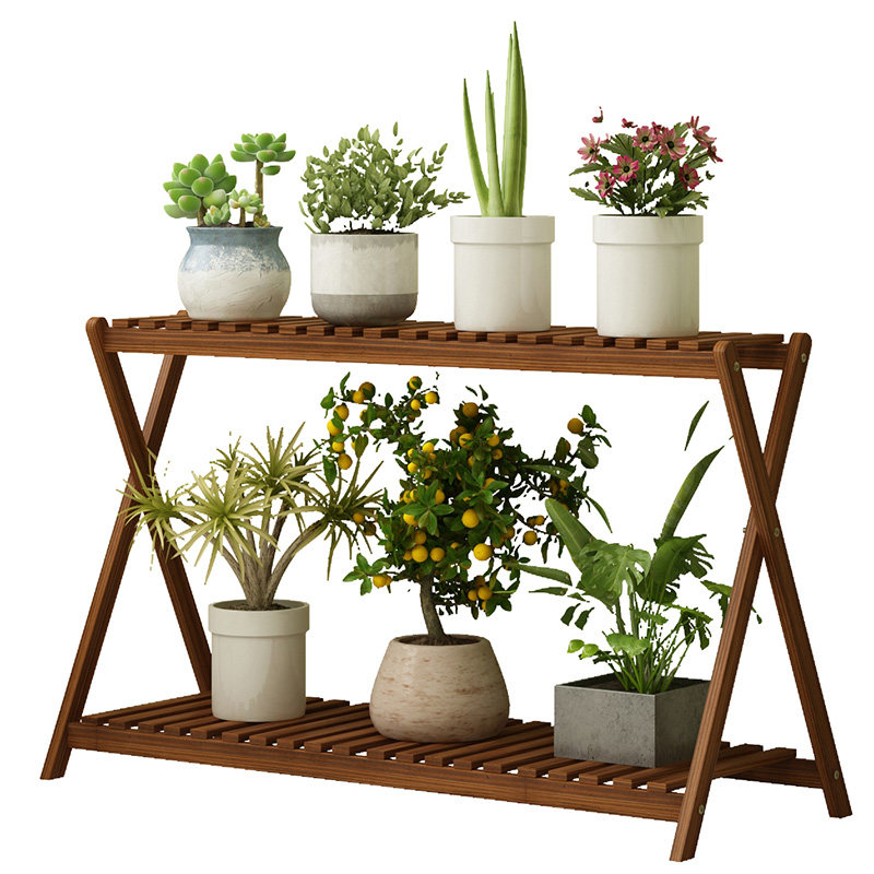 实木质室内外二层落地式置物架