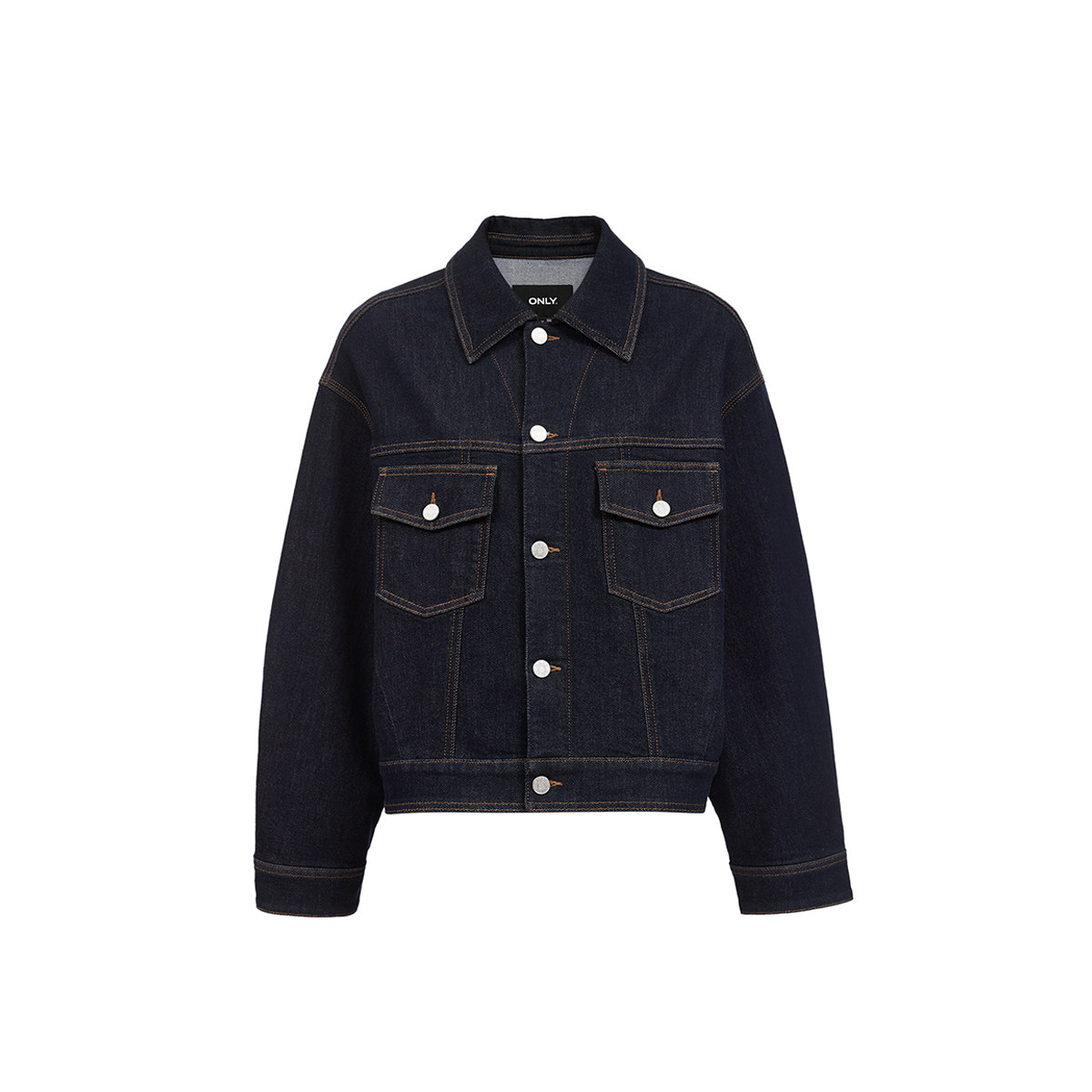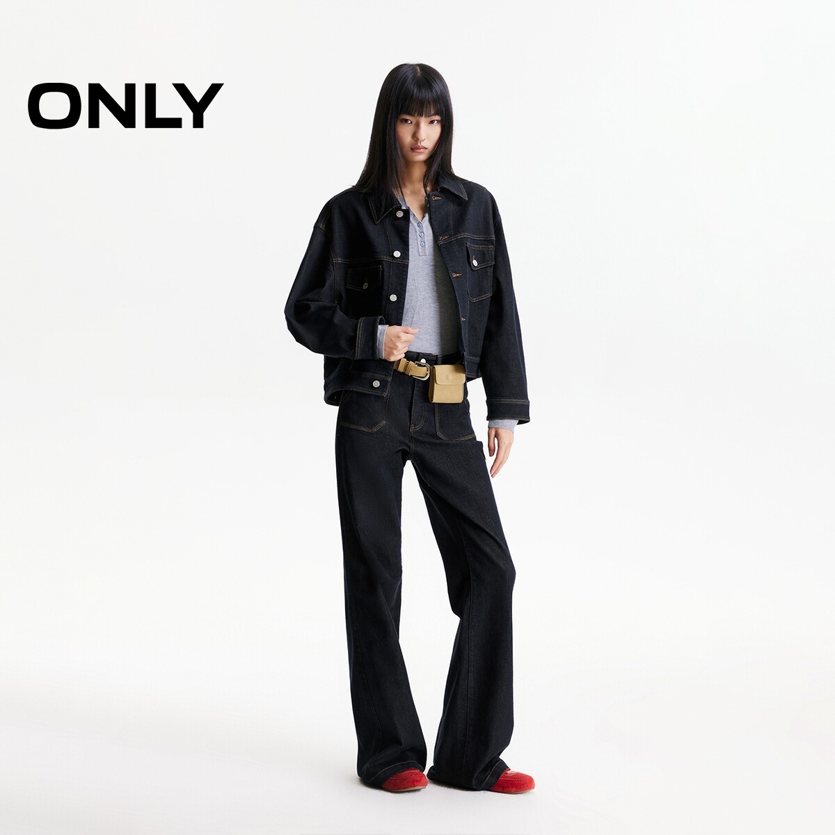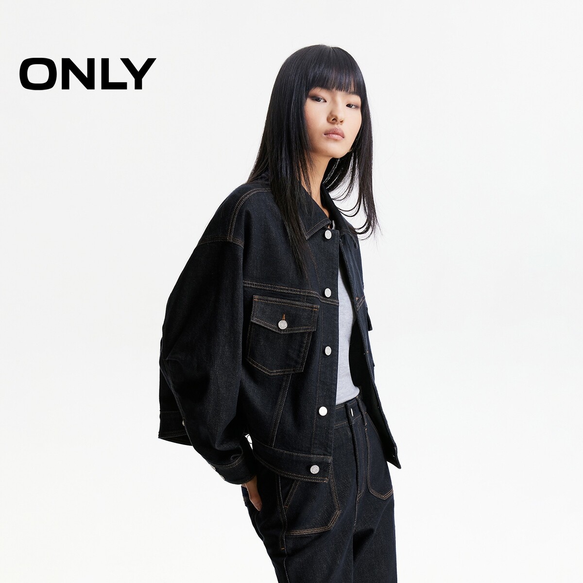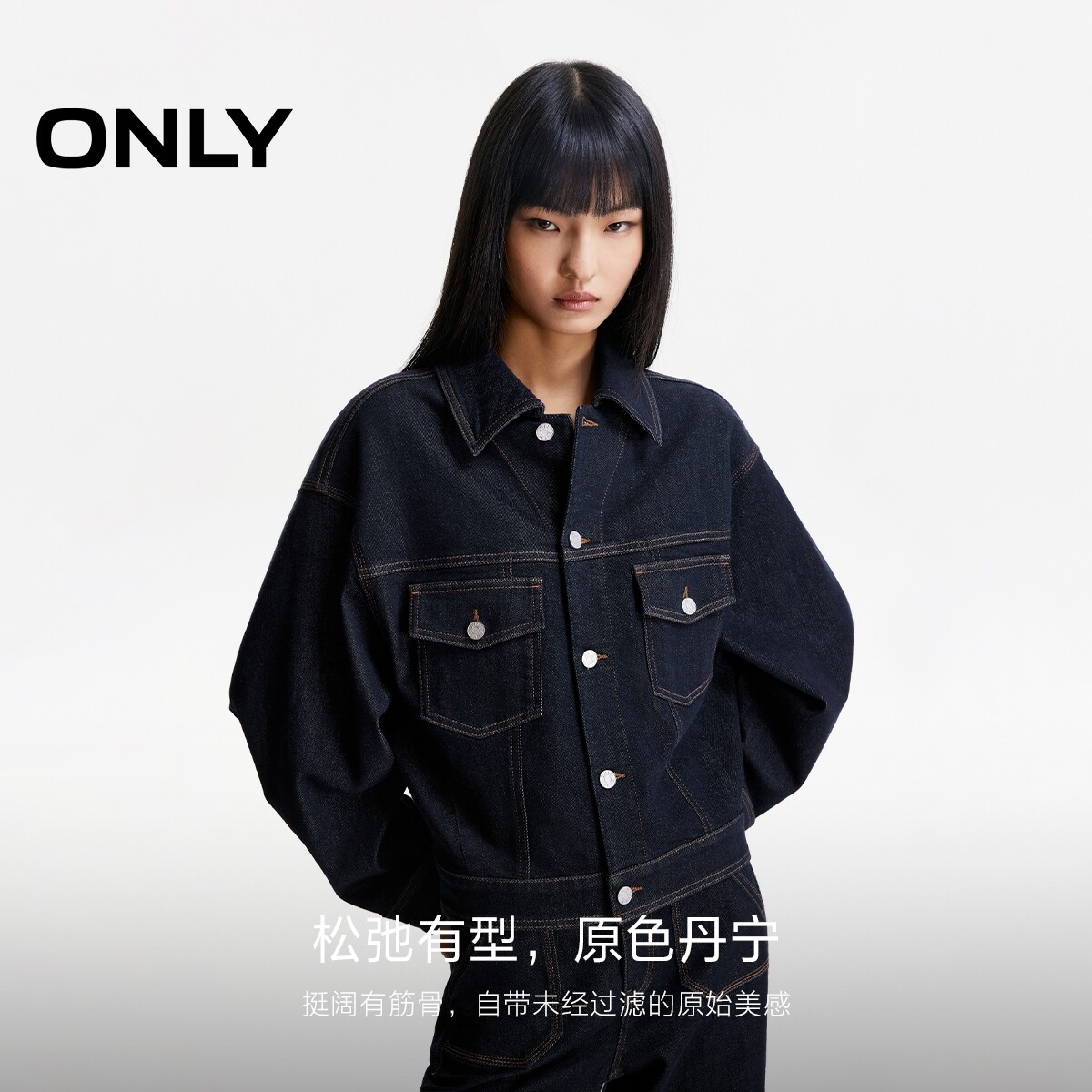 绫致ONLY2025秋冬新款酷飒翻领设计落肩宽松长袖牛仔外套女