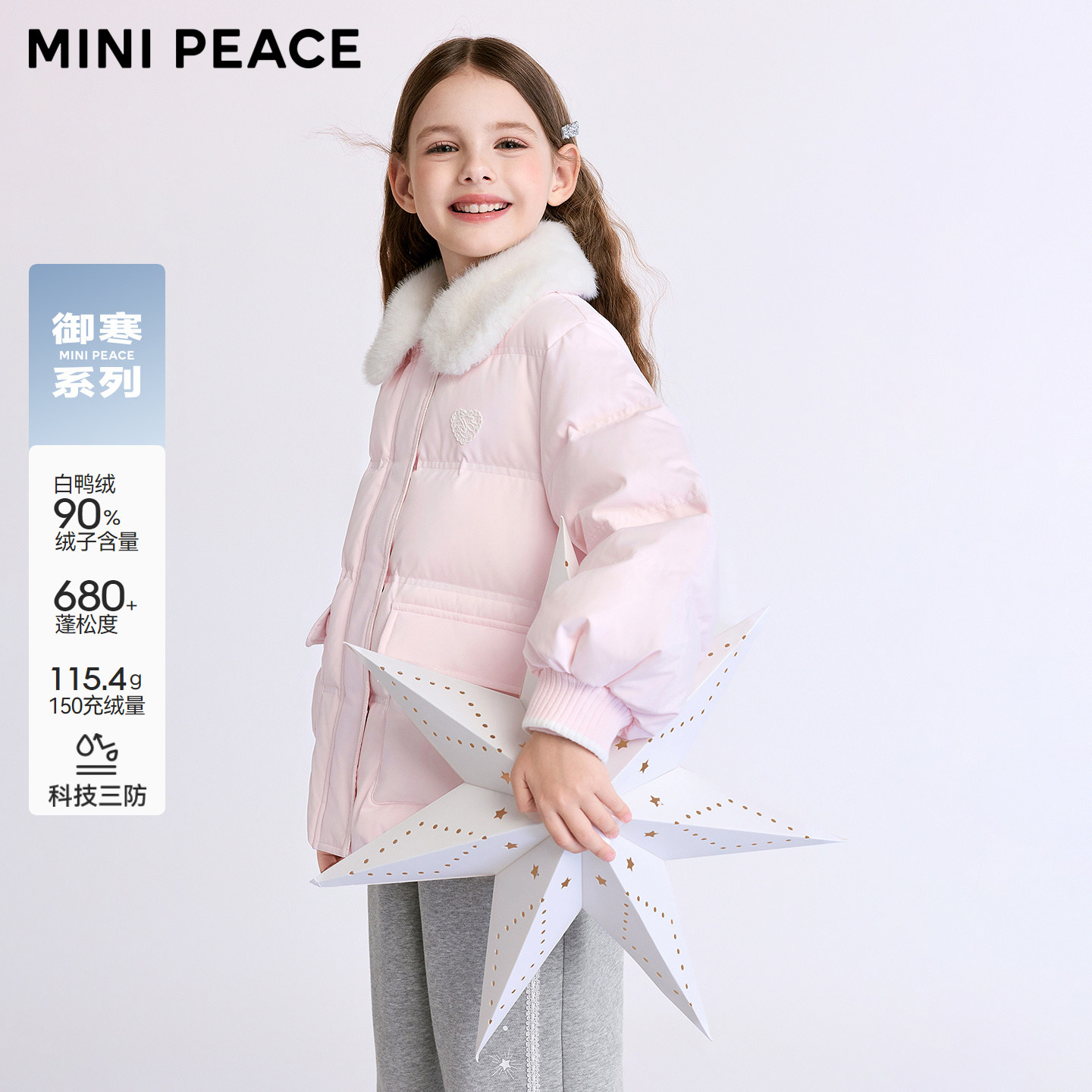 【轻暖系列】MINIPEACE太平鸟童装女童羽绒服毛领甜美冬装外套新