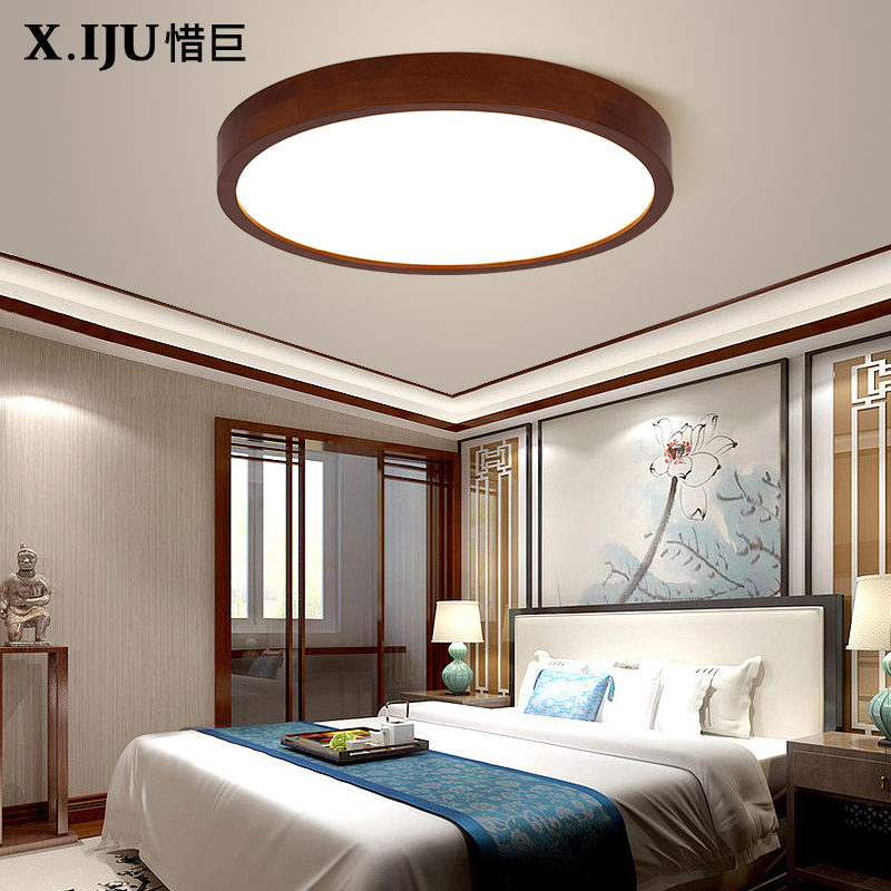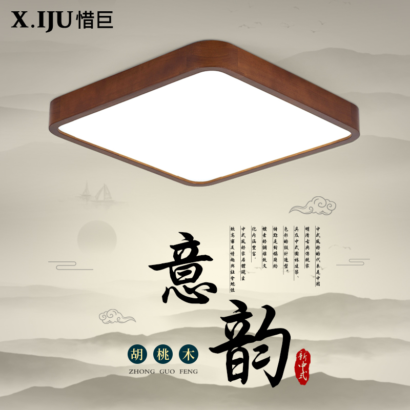 新中式胡桃木LED吸顶灯简约现代主卧室餐厅房间阳台过道大气灯具