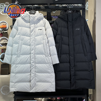 李宁2025冬季新款男子防泼水保暖抗静电鸭绒保暖长羽绒服AYMV217