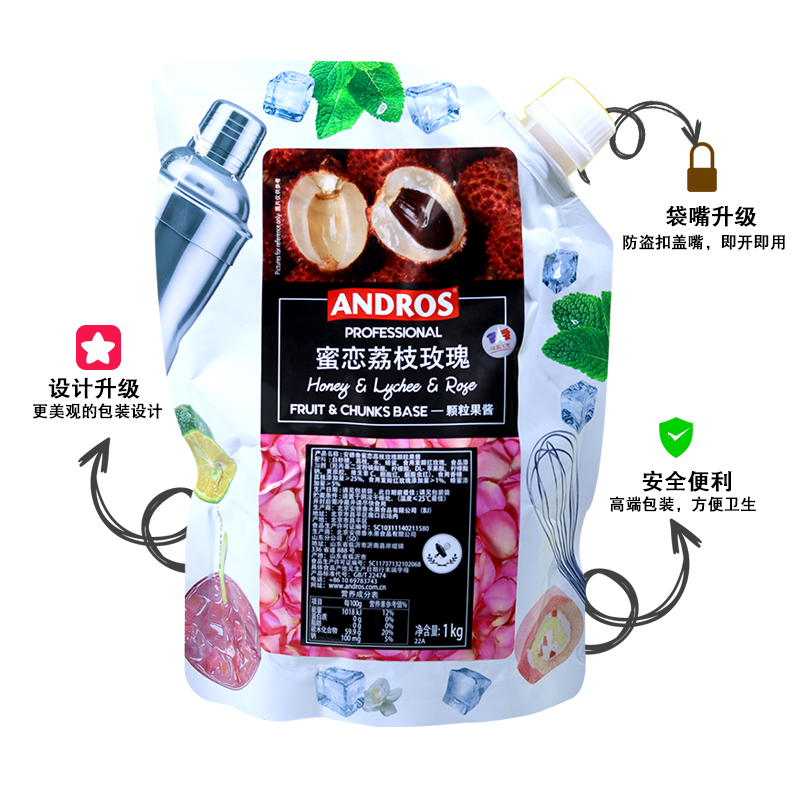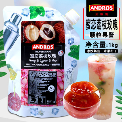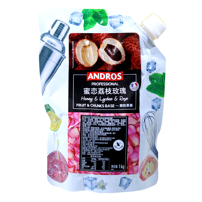 安德鲁蜜恋荔枝玫瑰颗粒果酱1KG袋装 冲饮烘焙奶茶店专用果泥酱