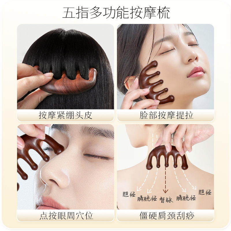头皮按摩梳经络檀木梳子头部面部眼部刮痧五爪五齿小青蛙梳头神器