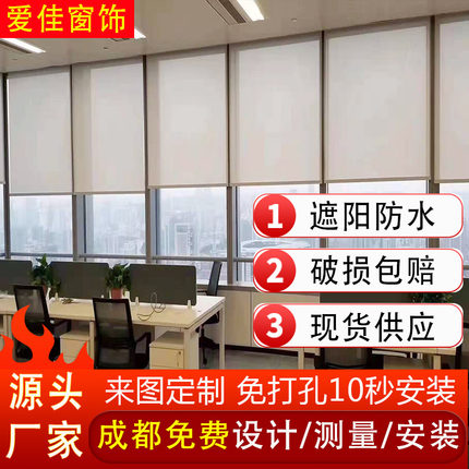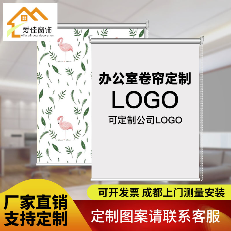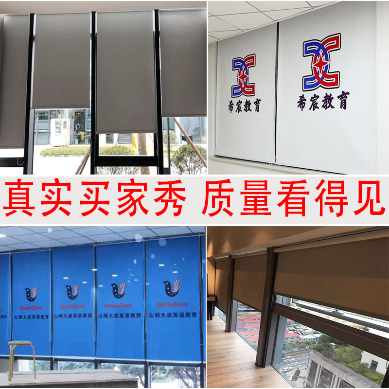 卷帘窗帘logo定制阻燃阳光面料全遮光免打孔安装办公室升降卷拉式
