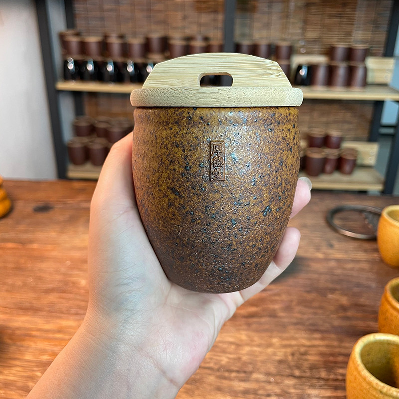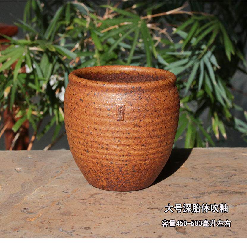 纯手工粗陶小水缸粗瓷茶具水缸杯水瓮杯陶瓷茶杯主人杯中式