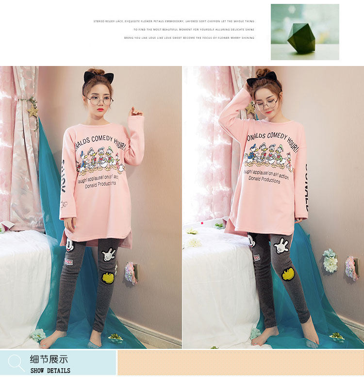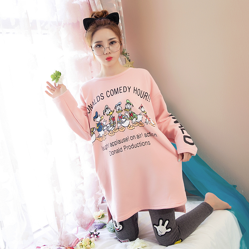 秋冬睡衣女长袖睡裙纯棉大码女秋款韩版卡通家居服性感可爱连衣裙
